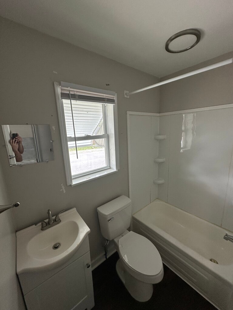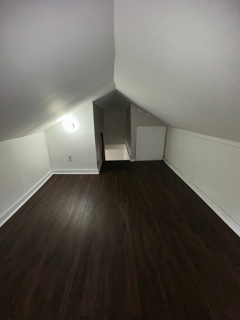 This unit h as three rooms in a row on the main floor, with a narrow staircase in the middle room to a single upstairs room. Currently there is only a washer hookup, no dryer hookup.