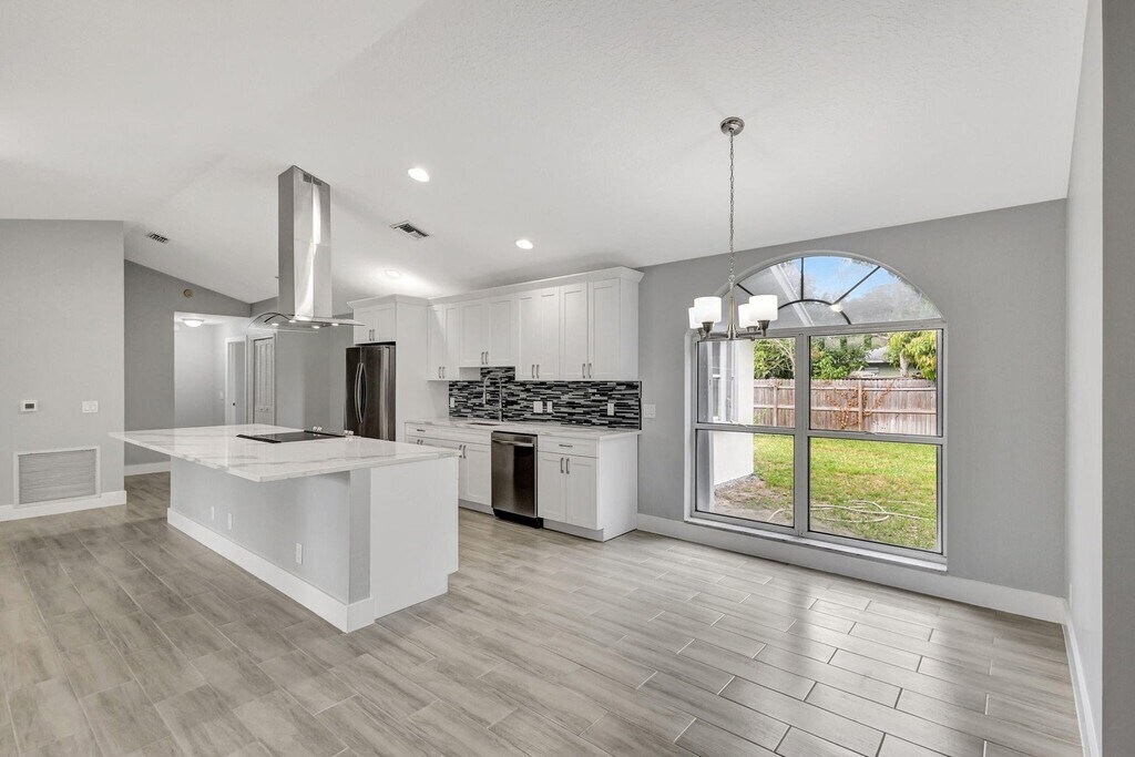 Welcome to this beautifully renovated 3-bedroom, 2-bath single-family home with a spacious den/family room and 2-car garage in desirable Royal Palm Beach. Enjoy a bright, open floor plan with vaulted ceilings and brand-new tile flooring throughout. The modern kitchen features new wood cabinetry, quartz countertops, designer lighting, stylish fixtures, stainless-steel appliances, and a large island perfect for entertaining. Both bathrooms have been tastefully updated with modern finishes. Fresh interior and exterior paint complete the move-in-ready feel. Relax or entertain in the private, fully fenced backyard. Conveniently located near shopping, dining, and major roadways. Welcome to this beautifully renovated 3-bedroom, 2-bath single-family home with a spacious den/family room and 2-car garage in desirable Royal Palm Beach. Enjoy a bright, open floor plan with vaulted ceilings and brand-new tile flooring throughout. The modern kitchen features new wood cabinetry, quartz countertops, designer lighting, stylish fixtures, stainless-steel appliances, and a large island perfect for entertaining. Both bathrooms have been tastefully updated with modern finishes. Fresh interior and exterior paint complete the move-in-ready feel. Relax or entertain in the private, fully fenced backyard. Conveniently located near shopping, dining, and major roadways. Jonathan & Giannina Babilonia Babilonia Team Realty One Group Innovation 14590 South Military Trail Suite E8 Delray Beach,FL 33484 Luxury estate, Property management,Renovation advisor,Residential & Rentals. Courtesy of KW Reserve