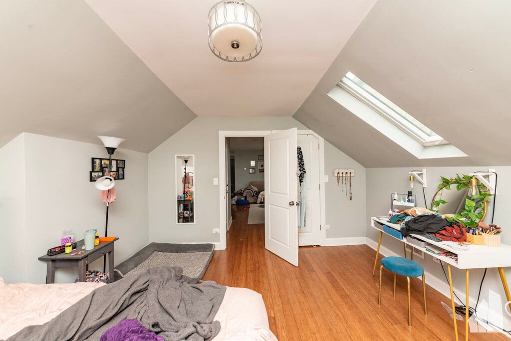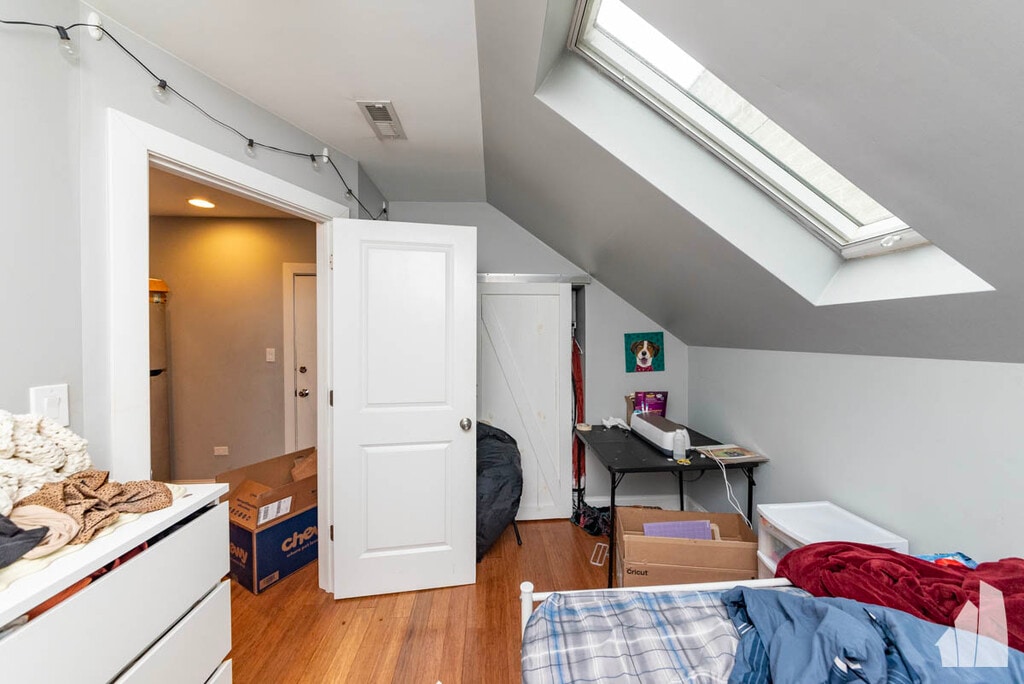 Welcome to your sun-filled sanctuary in the heart of West Town! This exquisite 2-bedroom apartment offers a top-floor retreat with skylights illuminating almost every room. Step inside to discover hardwood floors that grace the entire space, creating a warm and inviting ambiance. The spacious primary bedroom boasts eastern exposure, providing ample natural light and features generous storage options. The living room is versatile, offering ample space for both entertainment and a breakfast nook or home office area, allowing you to customize the space to suit your lifestyle. Indulge your inner chef in the fully renovated kitchen, complete with granite countertops, stainless steel appliances, including a microwave and dishwasher, and plenty of cabinets for all your culinary essentials. The bathroom has been tastefully renovated, featuring stand-up showers and ample storage space, ensuring both style and functionality. Convenience abounds with in-unit laundry and central heating and air conditioning. Outside, you'll find a shared outdoor space where you can relax and unwind. Parking is included in the rent, and the building is pet-friendly, welcoming your furry companions into your new home. Located in the vibrant West Town neighborhood, you'll enjoy easy access to popular spots like Kasama, Forbidden Root, Opart, and Big Shoulders Yoga, ensuring a lifestyle filled with dining, entertainment, and relaxation options.