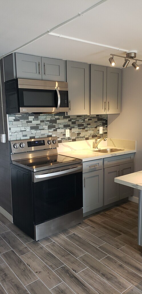 Fully renovated studio unit with new porcelain flooring throughout living and bathroom, new kitchen cabinets and quartz counters. Brand new refrigerator, range/oven, microwave hood, and Mitsubishi Split AC unit. Brand new vanity, porcelain tile bathroom surround, with new fixtures, and refinished tub. Unit has a brand-new feel. Has one assigned parking stall. Per building rules, no animals allowed. Ready to move in.