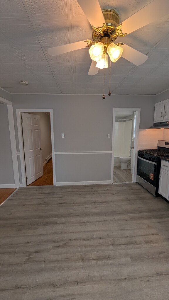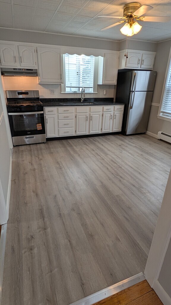 ** Newly Renovated 1st Floor Apartment with Modern Finishes ** Step into a completely refreshed and modern living space on the first floor of 85 Brayton Avenue. This apartment combines the elegance of historic craftsmanship with the convenience of brand-new, high-end updates. From the gleaming floors to the stainless steel appliances, every inch of this unit has been touched. Interior Features * Stunning Kitchen: Fully reimagined with brand-new granite countertops and a spacious pantry. It features a new stainless steel stove and refrigerator set against newly installed, durable vinyl plank flooring. * Refined Living Areas: Enjoy freshly painted walls throughout and original hardwood floors that have been professionally refinished to a high shine. New vinyl planks floor in the kitchen * Updated Bathroom: Completely refreshed with a new toilet, vanity, medicine cabinet, and modern lighting fixtures. * Comfort & Climate: Stay cozy with baseboard heat throughout the unit. Ceiling fans are installed in both the living room and kitchen to maintain a comfortable breeze year-round. * In-Unit Laundry: Maximum convenience with a washer and dryer included right in the apartment. Exterior & Amenities * Outdoor Space: Access to a shared backyard, perfect for getting some fresh air. * Location: Ideally situated in Fall River with easy access to local amenities, shopping, and highway on-ramps. Lease Details * Move-in Requirements: First month, last month, and security deposit. * Screening: Credit/background check and income verification required.