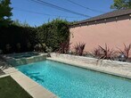 One bedroom, one bathroom -- peaceful bungalow in Westchester/Playa Vista/LAX in Los Angeles! Inside, you’ll find all brand-new appliances and furniture, including an in-unit washer/dryer, dishwasher, stainless steel kitchen suite, and two flat-screen TVs. The modern kitchen is fully stocked with cookware, dishes, and utensils—ready for you to move in and start living. The living room features vaulted ceilings, large windows, and stylish finishes, while the peaceful bedroom includes a queen bed, armoire, and serene views. A spa-like bathroom with marble vanity and porcelain tub/shower offers a hotel-quality touch. Stay comfortable year-round with air conditioning in every room, electric heat, and high-speed internet included. Enjoy secure, controlled access, a personalized electronic lock, and your own off-street parking space. Utilities (water, electricity, Wi-Fi) are fully covered.