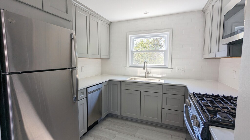Desirable Elmhurst Location Providence College We invite you to view this meticulously renovated charming two bedroom in the heart of Elmhurst. Be the first to enjoy the comforts of this home in one of the most sought after neighborhoods. Featuring a state of the art designer custom kitchen with an open concept feel complete with stainless steel appliances, dove gray shaker cabinets, white subway tile and white quartz countertops. Perfect! . The light filled open living- dining room with large windows, beautiful flooring and handsome fireplace mantel invite you to stay awhile and experience the distinct feeling of home. Two luxuriously large equal size bedrooms boast ample wall length closets and offer a calming respite. Freshen up in the roomy updated full bath and shower with large vanity and mirror. Extra Bonus - step out to the enclosed screened-in flagstone porch and private backyard. Factor in garage and a large bright clean full basement with new complimentary washer/dryer and you have the perfect rental! Grab this ideal location, just minutes away from the prestigious Providence College and Rhode Island College, Brown University, RISD and Johnson and Wales famous culinary school. Experience all that Providence has to offer as an emerging vibrant important and fun city known for top universities, leading edge restaurants , the arts, theater, Water Fire, Whole foods, Amtrak all at your doorstep. Don't miss this opportunity. Apply and qualify now. Please Fill Out Application Occupancy two persons Credit 675+ & background check Monthly Income equal to 3x the monthly rent. Provide a government issued ID One small pet negotiable