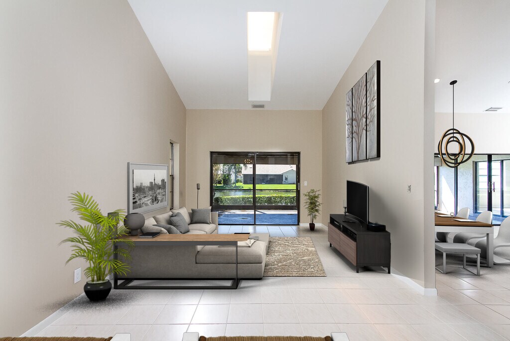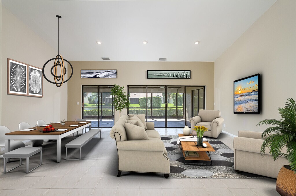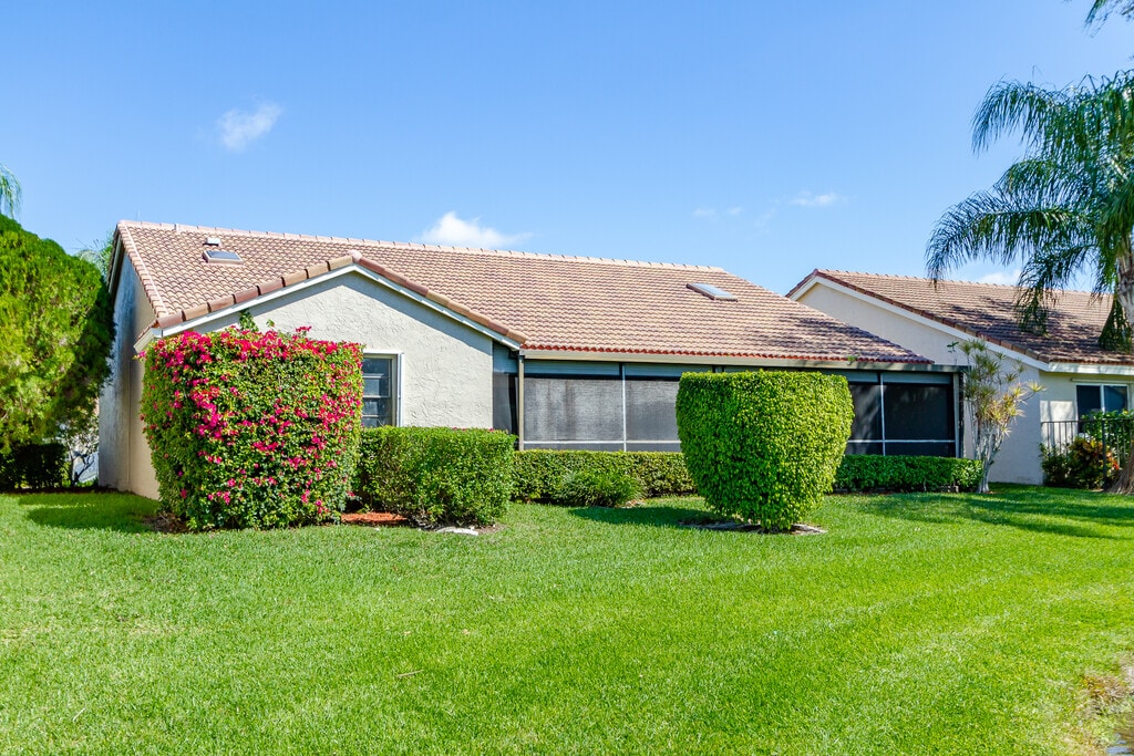 This property at 8555 Eagle Run Dr in central Boca Raton features 3 bedrooms, 2 bathrooms and a 2 car garage within a spacious 1,986 square feet. The living room offers ample space for relaxation, while the kitchen is equipped with essential appliances and storage options. The primary bathroom includes double vanities and a separate tub and shower for convenience. Outdoor amenities include a patio area, perfect for gatherings, and access to a playground and pool within the gated community. Additional features include a wet bar, sprinkler system, and washer/dryer setup. The property is also cable ready, enhancing connectivity options.