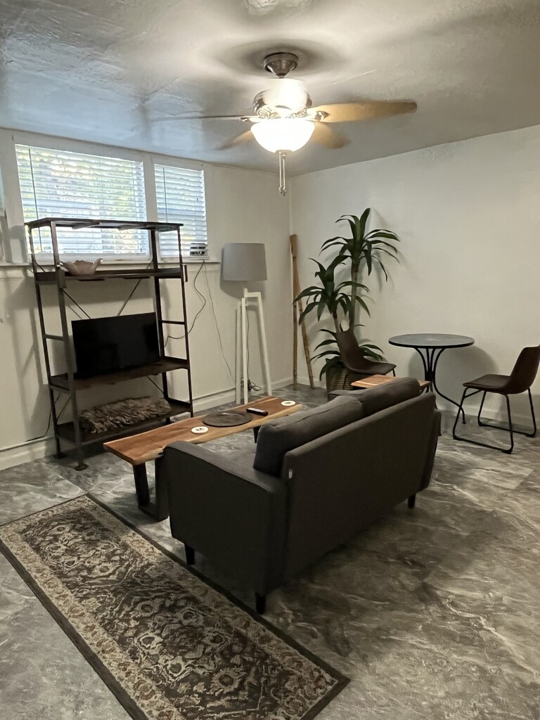 Fully furnished and ALL UTILITIES INCLUDED IN THE MONTHLY RENT. Entire apartment, private entrance 1 bedroom 1 bathroom. Short term lease then month to month. Very clean, fully furnished, fully equipped kitchen dishes pots and pans etc; fridge, stove/oven, dishwasher, microwave and all bed linens and bathroom towels. Just bring your clothes and food! All utilities included, WiFi, Smart TV flatscreen, heating and cooling, washer/dryer, snow removal, lawn care all provided. Spacious 1 bedroom 1 bathroom - lots of windows and natural light, walk-in closets and built-in storage. Reserved parking pass provided. Great walking neighborhood - across from ISU campus 5 minutes to Portneuf Medical and other employers.