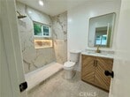 Modern elegance and effortless functionality come together in this beautifully redesigned 3-bedroom, 3-bathroom home, offering a bright open layout and seamless indoor-outdoor living. As you step through the front door, you re welcomed into a spacious living room with warm wood-look flooring and recessed lighting an inviting space that flows directly to the expansive private backyard. Framed by mature trees and fresh landscaping. Owner Pay/Included in Lease WATER & GAS. Just off the main living area, the contemporary kitchen is thoughtfully appointed with sleek cabinetry, quartz countertops, premium stainless steel appliances, and a sunlit dining nook. From the kitchen, you ll find a convenient laundry room with ample storage and a stylish powder room ideal for guests. Tucked away on the opposite side of the home, the private bedroom wing features 3 well-sized bedrooms and 2 full bathrooms. The tranquil primary suite includes its own direct access to the backyard creating a serene retreat along with generous closet space and a beautifully updated en-suite bathroom with modern finishes. Two additional bedrooms share a chic hallway bathroom with a walk-in shower and designer details. With central air and heat, updated systems, refreshed interiors, and a sprawling outdoor space perfect for children, pets, entertaining, or simple everyday enjoyment, this home blends comfort, style, and practicality in every detail. A move-in-ready at the highest living standards.
