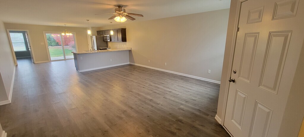 This paired villa has over 1500 square feet of space and checks all the boxes. Fresh paint and new vinyl plank flooring throughout, really make this home feel new and spacious. 3 bedrooms and 2 bathrooms will give you plenty of space. The primary bedroom has a large, walk-in closet and en suite bathroom. The 2nd and 3rd bedrooms are large in size both with ample closet space. The open concept great room is right off the kitchen. The large eat-in kitchen has a stainless steel refrigerator, new slide in range, built-in microwave, dishwasher, pantry, and plenty of room for a table. Walk out of the kitchen through the sliding doors and enjoy a cup of coffee on your nice patio. In unit laundry room with washer and dryer, attached 2 car garage and plenty of closets! The home is close to US 30, I-65 and lots of shopping! Credit report and background check with online application required ($29.00 per adult/anyone living in the home that is over 18 years old). NO PETS OR HOUSING VOUCHERS ACCEPTED. To qualify, a minimum credit score of 650 is required, along with a monthly income of $5700. First months rent of $1900.00 and a security deposit of $1900.00 will be due at lease signing. Available December 1st. Don't let this one get away!!