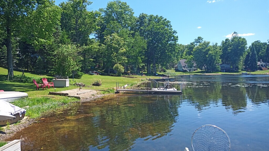 Looking for a couple or small family that loves to relax in nature. Beautiful Lakefront views in this 5 bed, 2 full bath home. 350 sq ft trex deck overlooking secluded Hidden lake perfect for relaxing or entertaining. Semi finished walkout basement to scenic private lake. Large yard and nature all around.