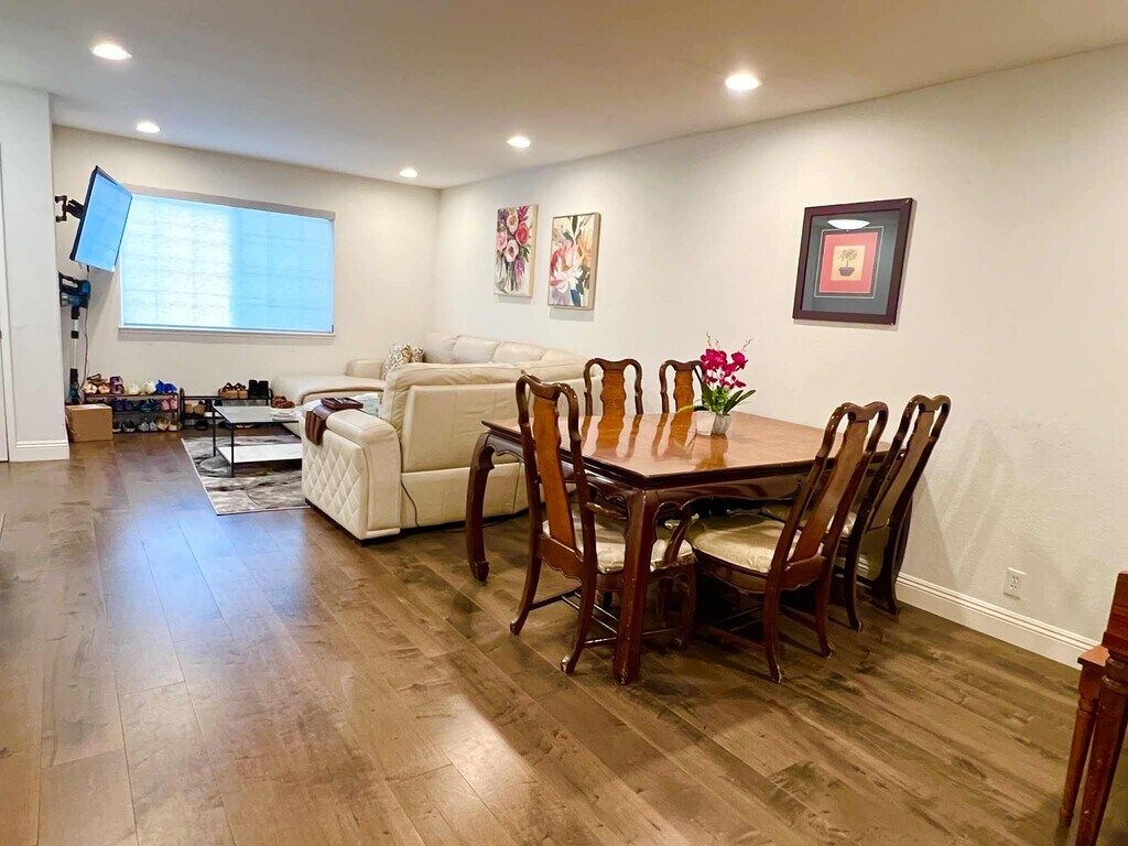- Private suite in a 2-bdrm townhouse shared with a quiet and tidy woman in her 60s who occupies the second suite on the opposite side of the house for excellent privacy. - The suite includes a queen-sized bed, an extra-large closet, and a private bathroom with both shower/tub. - The entire townhouse has been tastefully upgraded, featuring hardwood floor throughout, a lightly furnished bedroom, a fully furnished living room with spacious and comfortable couches and a TV, a formal dining area, breakfast nook, and a modern kitchen. - Kitchen with granite countertops, new cabinetry, electric oven/range, dishwasher, and microwave - Direct access to a charming private backyard from the kitchen - Assigned free covered garage parking along with ample street parking - The townhouse is in a quiet single-family neighborhood and conveniently located for commuting to Santa Clara University, Costco, major tech companies, and various popular restaurants - Shared utilities approximately $50 per month - Security deposit: $1780 - Lease term: 6 months + month-to-month