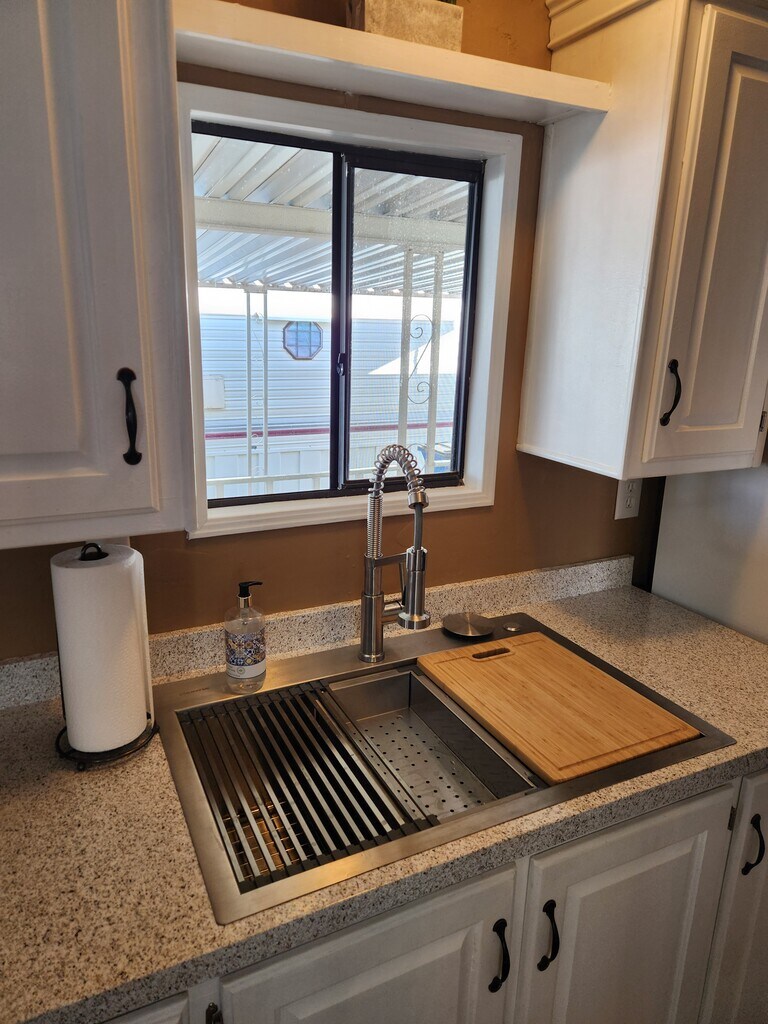 24 hour Gated resort community with security guard. PLEASE note that at least one renter must be over the age of 55. Aug - November - $1,250/month 2026 - Jan - $2,900 open. 2026 - Feb & March - $2,900 (booked) April - $2,200 1 bed 1 bath designer fully furnished home. Kitchen is fully stocked with pots/pans, cups, plates, wine glasses, cooking utensils, blender and much more. Keurig and regular coffee maker. High speed Internet. Washer and Dryer Rigorous cleaning standards applied between each renter. Easy free way access (I-10 Interstate). 10 minutes to Costco, Fry's grocery, Safeway and Walmart. On site at Voyager Resort is a beauty shop/barber shop, bar restaurant, post office and credit union bank Utilities (water/sewer, basic cable, internet & garbage) included. Renter pays electricity/gas Covered Parking Gas BBQ Main Bath has shower/tub. Living room with flat screen smart TV and sofa. Large deck off the of the home with outdoor furniture to sit and relax after a long day at work No Pets 2 Bikes Available Tons of storage and closet space. $600 refundable security deposit. $150 cleaning deposit Hiking trails right across the street from resort. This home is in Voyager Resort which features three swimming pools, two hot tubs, pickle ball and tennis courts, 24 hour state-of-the-art fitness center, 3 par golf course, day spa, and a full-time recreational staff. So many activities to join, or just relax by the heated pool, ride your bike throughout the park or at nearby bike trails. Come and play the Voyager Resort Golf Course. A very challenging 9-hole Par 3 nestled around a lake. It is an easy course to walk, however Handicap carts are allowed. Practice your swing at the provided net area. There is also a nice putting green. The exercise is great, but the mountain views are spectacular and the sunsets unforgettable. For added excitement, enjoy a day trip to one of the many southern Arizona landmarks such as the Arizona-Sonora Desert Museum, Biosphere 2, Pima Air & Space Museum, Mission San Xavier del Bac, Kartchner Caverns, Old Tucson Studios, or visit Mount Lemmon, Tubac, Tombstone, or one of the many nearby, local wineries. Here is a list of what else Voyager has to offer: Library Card Rooms Craft Shop Wood Shop Sewing and Quilting Room Billiards Room Bocce Courts Horseshoe Pits Shuffleboard Courts Tennis Courts Pickleball Courts Volleyball Court Fitness Center Heated Pools Covered and Outdoor Hot Tubs and Sauna Restaurant and Bar 9-Hole Golf Course Golf Pro Shop Market and Gift Shop Banquet Facilities Meeting Rooms Computer Resource Center Credit Union Bank Massage Center Here are a couple of reviews from past renters: "As a new Raytheon employee and new to Tucson, I needed a furnished rental in a quiet location that was close to work with covered parking for my truck and motorcycle. A really tall order when you combine the desire to be month-to-month. I was pleased to find this wonderful place in Voyager RV park offered by Mary Austin. Mary is a very talented interior designer and it shows in all the little details in her rental. She thinks of everything a professional would need in a fully furnished place like hi quality sleep number bed with top of the line pillows and bedding. All the furniture is new stylish and comfortable with a very nice 4KUHD tvs with cable and Netflix. And lets not forget the all-important BBQ grill. All of this is located in a wonderful tight knit community that comes with pools, weight rooms, tennis courts and a fabulous bar & grill with nightly drink and meal specials. I stayed for 4 months and never had any issues. When I had questions, Mary was always quick to respond. You really can’t go wrong with this place and I highly recommend if you are looking for a short term rental with all the amenities" ~ Ken N. "Voyager is a very friendly "small town" environment that is totally safe and secure. Pools, tennis courts, market and restaurant only a few steps away. Easy access to the Tucson airport and the freeway entrance. Lovely grounds and vistas. The home itself was great. Mary did a wonderful job decorating and including all the needed items for my stay. Check in was easy and seamless. I can’t thank her enough for such a wonderful home and plan to come back even when I am not traveling for work." ~ Jill H. "Can’t believe the month has gone by! So much to do in this park! We love the pickle ball, woodworking shop, bingo, market days, pools/hot tubs and restaurant on site! It’s very well maintained and clean! Easy to get to off the freeway and close to the biking trails in the city! Second time back, great place to call home! ~ Kathy R.