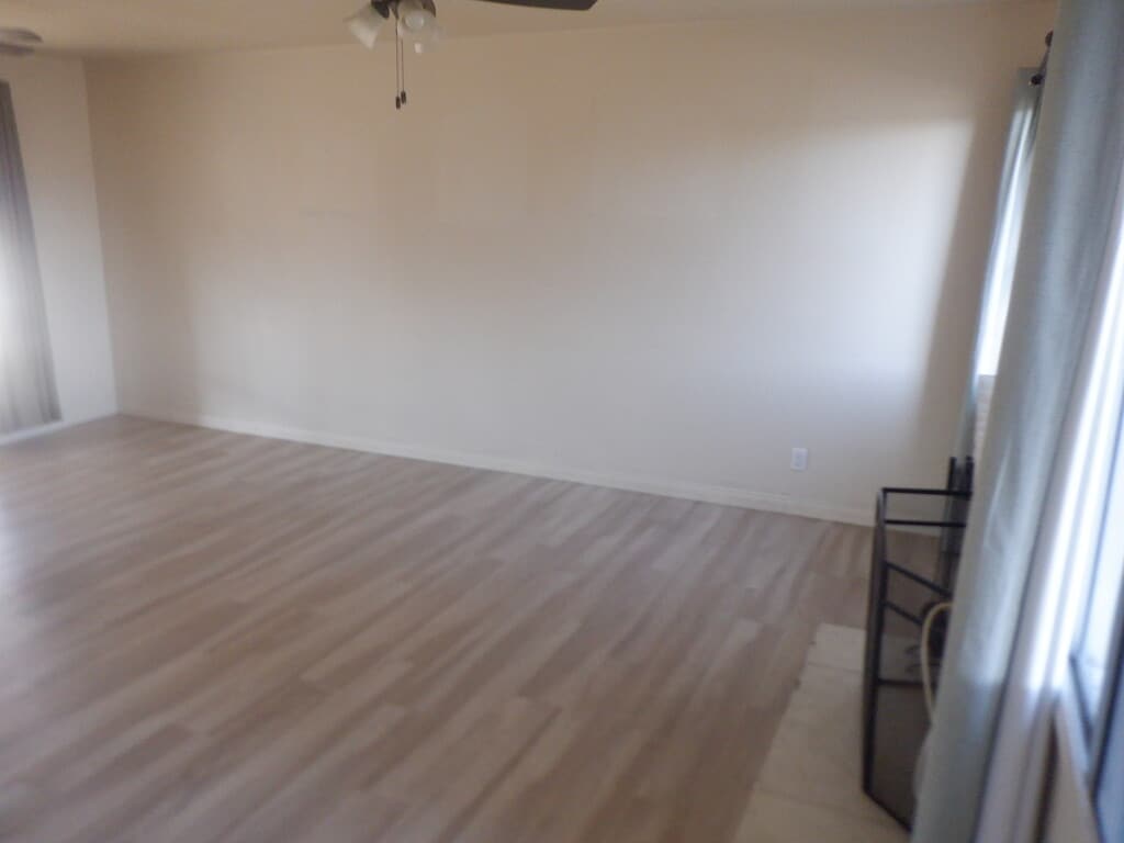 Nice and Clean, Ceiling fans, large yard, Full size 2 car garage, laminate flooring, laundry room, window treatments.