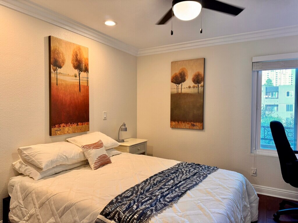 Modern 1-Bedroom in La Jolla/UTC in Beautiful Villa Vicenza This updated 1-bedroom, 1-bath apartment offers 600 sq. ft. of stylish living space in a secure, gated community. The bright living room welcomes you with plenty of natural light and comfortable furnishings. Facing a nicely designed courtyard you are ensured to have a quiet environment. The newly remodeled kitchen, bathroom, and flooring feature high-end finishes with timeless design. The spacious bedroom fits a queen-size bed and includes a walk-in closet for ample storage. *Apartment & Community Features: In-unit washer & dryer Resort-style pool & jacuzzi Fully equipped fitness center Smoke-free, gated community for added security 24hr security patrol Move-in ready and designed with comfort and convenience in mind, this home puts you in the heart of the La Jolla/UTC area with shopping, dining, and UCSD just minutes away.