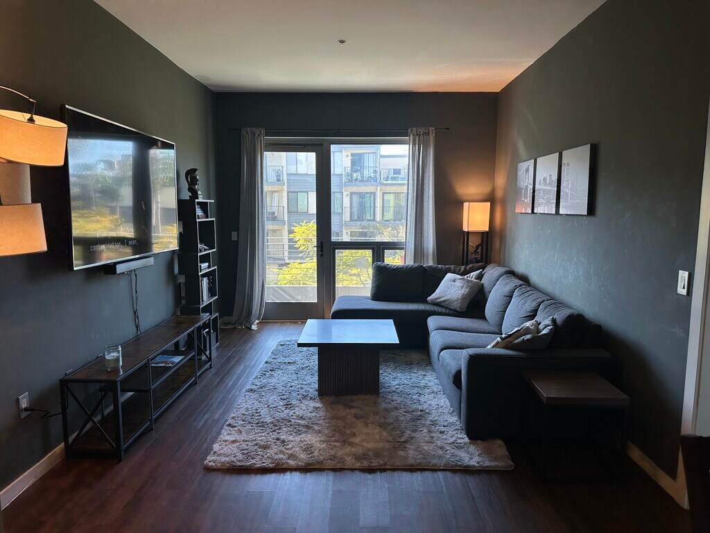 Move in August 5th 2025 1 bedroom, 1 full bath. Currently furnished and move in ready, but flexible (can clear it out completely). 3rd floor with balcony and patio set. 75in living room TV included. Assigned garage parking spot, plus additional street parking. Central A/C. Flexible lease duration. Washer and dryer in unit. Concierge, pool, large spa/hot tub, fitness center, BBQ area, cabanas and fire pit. Stainless steel appliances, remodeled kitchen with granite counters. 1 bedroom with enormous amount of closet space, 1 full bathroom, granite counters. Remote lock on door, key fob as well as remote phone app access to main entrance of building. Great location! Safe and quiet area off the beaten path yet walking distance to Little Italy, parks, and Gas Lamp area. Fifteen minute ride to Pacific beach, 12 minute ride to Coronado. Located right near the freeways (1 minute from the 5 and 163). Multiple restaurants and convenience stores within short walking distance. Park/playground and dog walking path right across the street. Renter pays for electric and gas. Small dogs allowed.