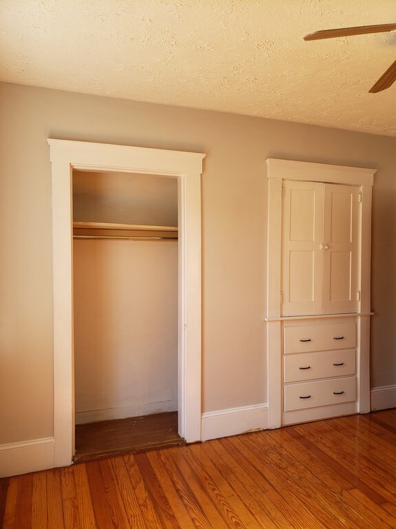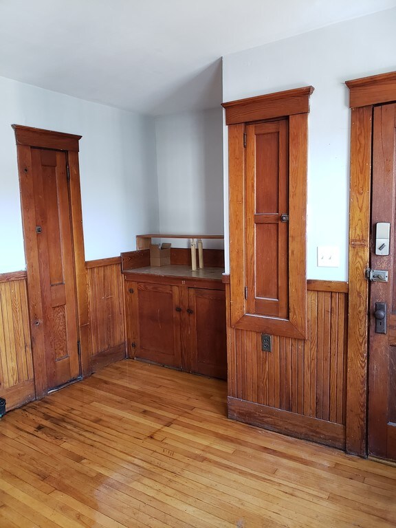 Sunny first-floor apartment in two family tenement. Hardwood floors and built-ins, three large bedrooms, two porches, shared attic, basement, off-street parking, and garage. This is located on a quiet dead-end street near Holy Family Hospital and schools.
