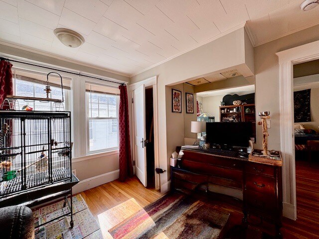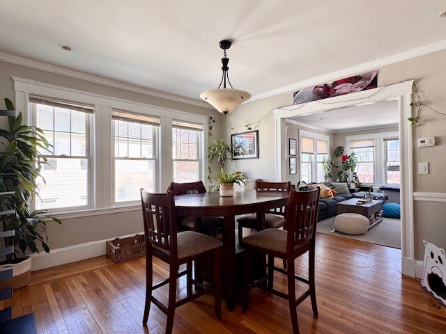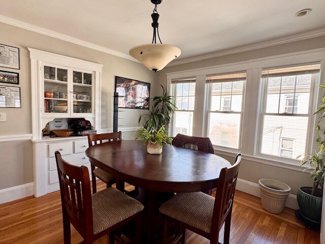This is a real home!! Great natural sunlight in this 2 level apartment that features a living room, dining room, Eat in Kitchen with Breakfast Nook, Pantry and 3 season porch along with a yard. The top floor primary suite has its own 2nd living room, office, wet bar and bath!!! Garage parking for 1 & additional 3 outdoor space INCLUDED IN RENT. Laundry is exclusively for this unit in the basement and there is plenty of storage. Pets are negotiable. Close to rt 16, 93, and Lifetime Fitness, BJ's, Supermarkets, parks and restaurants. WELLINGTON TRAIN STOP RIGHT DOWN THE STREET 2 OFFICES 2 DECKS PARKING FOR 4 CARS High Ceilings Private laundry Storage Yard Garage Parking Private sunroom