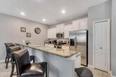 Our two-story home comes with a private splash pool, screened-in patio and four bedrooms that feel like home. We also have amenities aplenty – from a fully furnished home to access to resort style living. Our gated resort community pulls out all the stops with a grotto hot tub, splash pad, bar & grille, arcade, cinema and activities. The space GREAT LOCATION NEAR THEME PARKS ZOE Paradise is located in a gated vacation home community in Kissimmee, Florida. We are tucked away from the crowds of Orlando while still being near medical institutions, golf courses and all the theme park fun: * Disney World theme parks – 4.9 to 13.9 miles * ESPN Wide World of Sports – 9.3 miles * SeaWorld Orlando – 16.3 miles * Universal Studios Florida – 19.5 miles COMMUNITY AMENITIES One of the biggest perks of staying at ZOE Paradise is all our neighborhood amenities – and yes, they are free. Spend time with your family at the community swimming pool or soak away in the grotto hot tub. There’s also a splash pad, sand volleyball, tennis and basketball courts, and a fitness center. And where else can you find a retro arcade and a cinema with daily show times? You can also grab snacks and sundries at the marketplace. Or enjoy a nice meal and strawberry daiquiris by the pool at the Bar and Grill and lake to walk around on premises. Cabanas can be rented on a first come first serve basis at the clubhouse. Better yet, everything is two streets over from our townhome. PATIO & POOL Our patio is an oasis where you can unwind after a long day. Relax in our lounge chairs or hang out in the swimming pool with the whole family. For your comfort, we provide a child safety fence for the pool area and a screen around the entire patio to keep bugs away. LIVING, KITCHEN & DINING AREAS Our open-concept living, kitchen and dining area is made for hanging out at home. Kick back on our gray sectional sofa which seats at least six. It has toss pillows and a throw so you can get really cozy. A picture window brings in natural light while a 3-light mini chandelier offers a nice glow at night. You can also gather around the coffee table to play a board game like Monopoly. Our kitchen is filled with bright white cabinets and stainless steel appliances. Cookware and dishware? Check. We have everything you’ll need to make healthy snacks for the children or your family’s favorite dinners. There’s also enough counter space for everyone to pitch in. And bar stools for those who want to take it easy. Over in the dining area, a glass doors look out to the patio and towering palm trees. Enjoy meals together at our 8-seater wooden table – it has Florida vibes with light blue placemats. 4 BEDROOMS Our four bedrooms are peaceful retreats where you’ll get a good night’s sleep. Modern platform beds. Other homey features include nightstands with lamps in every bedroom. And, of course, there’s a room for the children with a Mickey Mouse and Toy Story theme. * Bedroom 1 – Queen bed * Bedroom 2 – King bed (primary), en suite bathroom * Bedroom 3 - Toy Story – Queen bed * Bedroom 4 - Mickey Mouse – Two twin beds Please note: Bedroom 1 is downstairs and all other bedrooms are upstairs. 3 FULL BATHROOMS Our three bathrooms give you plenty of space and privacy for your self-care routine. The primary bedroom has an en suite bathroom with a double vanity and tub / shower combination – perfect for relaxing baths, or bath time with the children! The bathroom in the upstairs hallway has a walk-in shower as well as the downstairs bathroom which also has grab bars for those that need a little extra help to safely navigate. KEY AMENITIES * Community amenities (see the “community amenities” section above) * Keyless entry * Swimming pool * Patio (covered & screened-in combination) * Outdoor dining area * Fully-equipped kitchen * Coffee and tea * Board games * Playpen & high chair * High-speed Wi-Fi * Smart TVs (5) for short term renters to use * Washer / Dryer * Central AC & Heat * Parking on premises PARKING We have parking for one car in the assigned 8966 space in front of our home. Additional cars can park in the unmarked spaces in this area too. PETS No pets allowed. Thank you for understanding. SWIMMING POOL Children must be monitored in and near our pool at all times. No diving is allowed. And young children must wear swim diapers in the pool; no regular diapers are allowed.