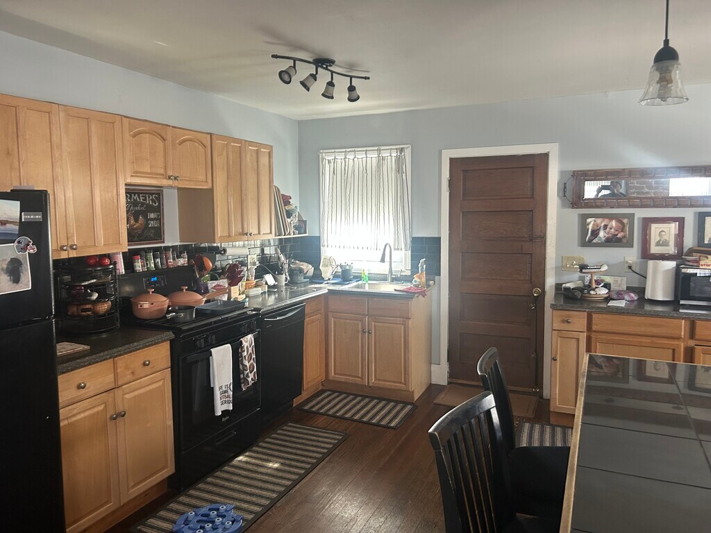 Duplex. 3 beds upstairs, open concept living, dining. Off street parking, private yard, dishwasher, washer dryer, short dead end street