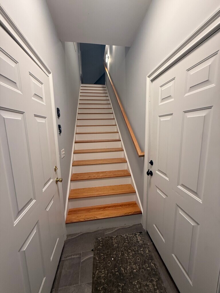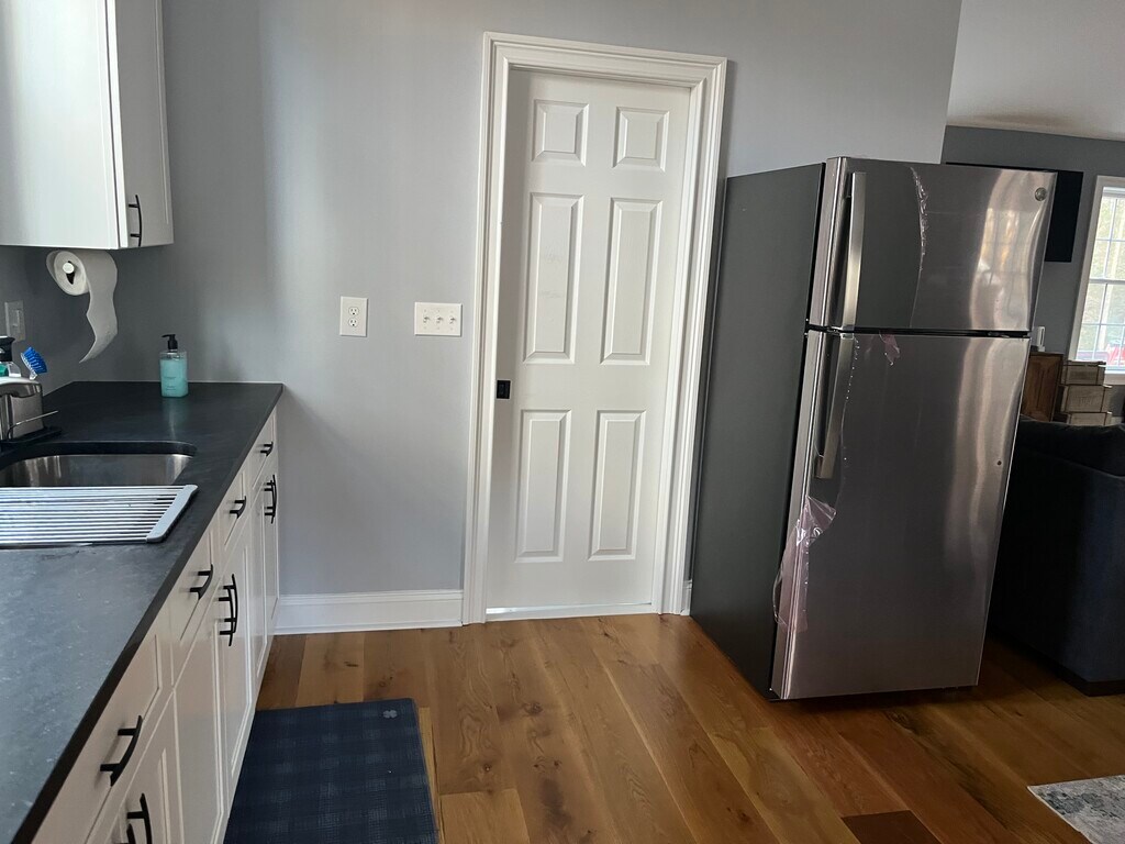 Newly finished studio apartment above detached garage on quiet dead end street surrounded by woods. New appliances hardwood floors. Bathroom floor has heated tiles. Unit has gas heat and AC. $2000 per month plus utilities. First, last, and security required.