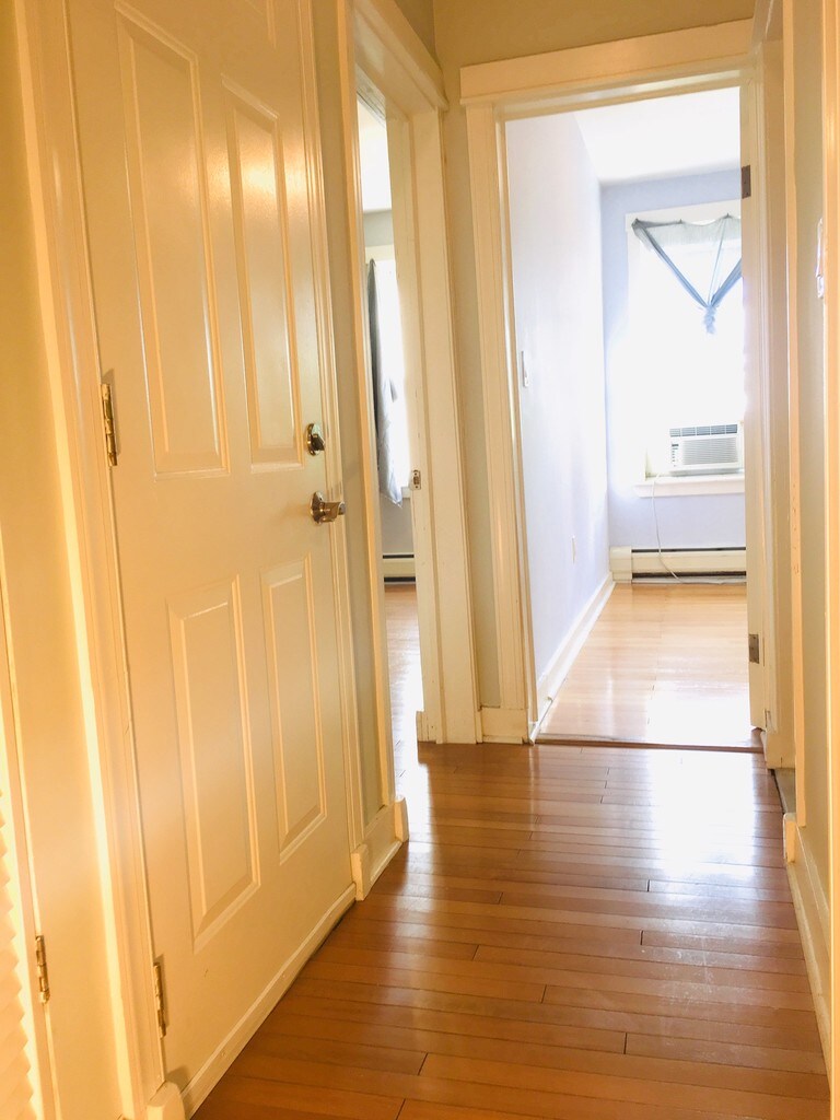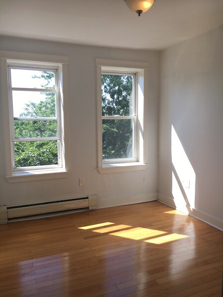 Beautiful No Fee apartment in brick row house with hardwood floors, and generous space. Located a short 4 block walk from Journal Square PATH back towards downtown off Newark Avenue in a neighborhood called ‘The Island’. Next to Hamilton Park and 'The Village' neighborhoods, close to Routes 1 & 9, 440, and quick access to the Turnpike. Closer to Manhattan than most of Brooklyn! Permitted street parking always available. Birds and trees out your window with long range views to the city beyond. Large sunny Living Room opens to separate large Dining room for real gracious living space. Porch out front great for afternoon sunset BBQ/drinks Cool functional and open kitchen with gas stove, refrigerator, d/w and new appliances. A cook's delight with interior window opening in kitchen to dinning area! Bright tiled bathroom with plenty of storage Many windows on all sides of the apartment, with flooded light morning through evening. Many upgrades to the apartment in this architect designed renovation with new solid wood floors, white trim and lightly painted walls Washer/dryer laundry in apartment. Nice quiet neighborhood of "The Island" in 'happening' Jersey City close to active parks including next to Hamilton Park, farmer’s markets at JSQ Path Plaza and Hamilton Park Enjoy many restaurants and bars 2-3 blocks away like Jane Doe, White Eagle Hall (see great bands), White Star, Madam French Bistro, Maxwell Alley, Cellar 335, Gia's Gelato and Cafe and so many others. FYI also the best Vietnamese, Indian, Pilipino Restaurants in the Metro region a few blocks away. - offering the urban experience with a neighborly twist. No Smoking building please Cats only please. Quiet building. Contact us to see this Awesome Apt!