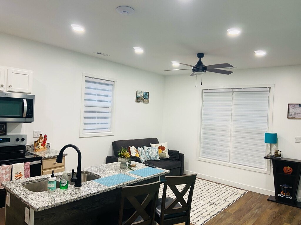 Modern Apartment For Rent: 2 bedroom, 1 bathroom located in a quiet area of Williamsburg, 7 min driving (2.5 miles) from William & Mary Campus, Colonial Williamsburg, Shopping and Dining. Situated conveniently close to the main intersection of I-64 and State Route 199, this apartment offers both comfort and convenience. The apartment offers kitchen with granite countertops, stainless steel appliances, living room, 2 bedrooms with spacious closets, modern bathroom, utility closet, and a specious patio with a lot of privacy. Keyless convenient entrance. 2 Designated assigned parking spots Water & Sewer, Trash, Lawn care & Exterior Pest Control, High Speed Wi-Fi, Washer & Dryer are included in the lease. There is a $150 cap on the Power Bill No evictions, No Criminal Record. Available December 1st, 2025. $2350/month rent $500 refundable deposit $250 one time admin fee Pet friendly - one time pet fee $200/per pet and $500 refundable pet deposit