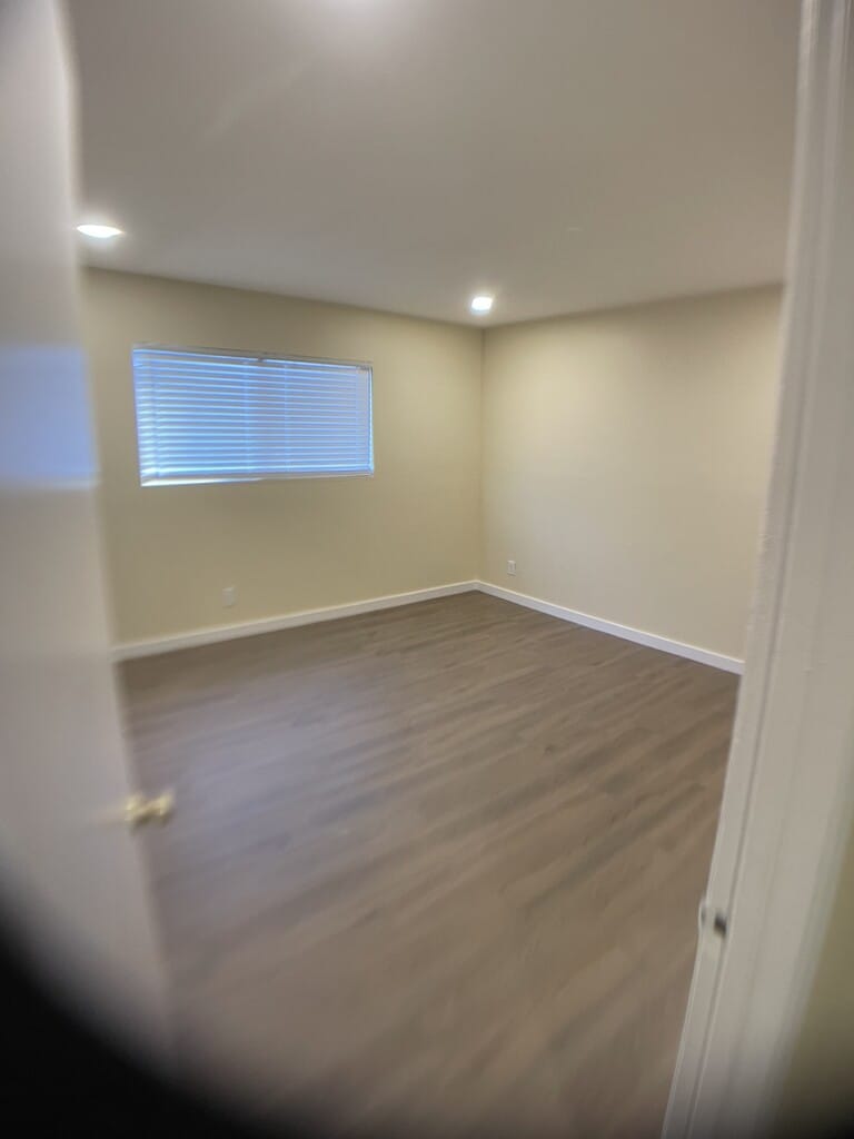 2-story, 2-bedroom+ 1.5 bath unit. Bedrooms are located upstairs with one bathroom/bath. Laundry machines on site. 2 parking spaces available. Upgraded and new laminate floors, new kitchen countertops, and recessed lighting throughout the unit. A/C unit. New blinds on all doors and patio sliding door. Available immediately.