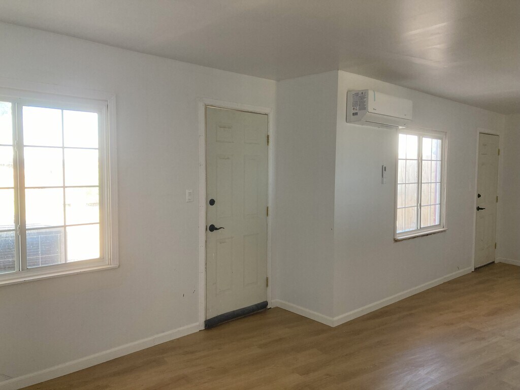 Unit #20 of Globetrotter lodge is the end unit at North west corner with 6 ft fences all around and spaceful parking and big tree shade sitting area outside. This unit is 800+ square feet(build from 3 hotel bedrooms), and equiped 3 quiet and brand new mini-splits Air conditioner(with heater). All furnitures are brand new (high end mattress with 768 independant pocket coil springs). open space small kitchen area provide SIMPLE cooking function with seperate kitchen sink. Brand new vinyl plank flooring. All utilities(electricity, gas, water, trash, high speed internet) are included in the rent. Typically lots of inquiries from poential tenants, so strongly recomment to submit your application so that your request will be treated in serious and quickest manner.