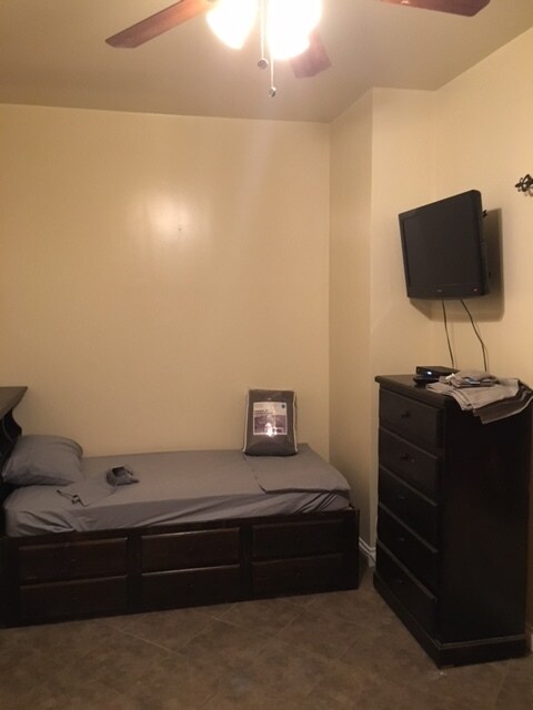 1050~~House has a large kitchen, you had your own cabinets with lots of appliance to cook with, Shared Living room, dining room, laundry room, all room are furbished, with desk, refrigerator, bathroom, closet, ceiling fan, central AC/Heating
