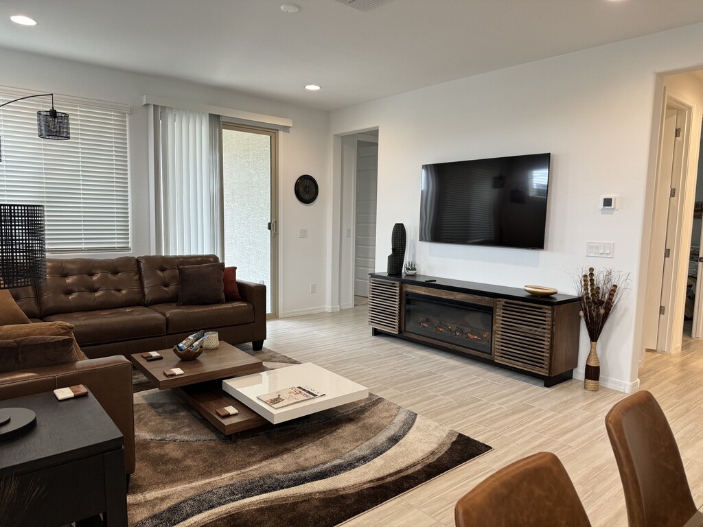 This almost new and fully furnished single family home is perfect for your home away from home in sunny Arizona. It is fully furnished with everything that you need and desire for your stay, whether it be for a work assignment, mid-term or long term stay or for a vacation or snowbird stay in the sun. All appliances large and small are included, such as a blender, toaster, electric opener, keurig coffee pod holder, electric mixer, full sized front loading washer and dryer, ironing board, etc. The home has three large smart tvs for your use with Samsung TV+ . WIFI is included. The living room has a comfortable sectional and the dining room has a table with seating for 6. The kitchen has a breakfast bar with seating for three . The outside is a true dream. It includes a built in BBQ with bar seating for 4. It also has a comfortable couch, as well as a firepit, turf, shrubs and a travertine patio. So nice. Rental rates for February and March increase to $4500.00 per month and February and March are sold as a package. Please call with special requests. All utilities are included.