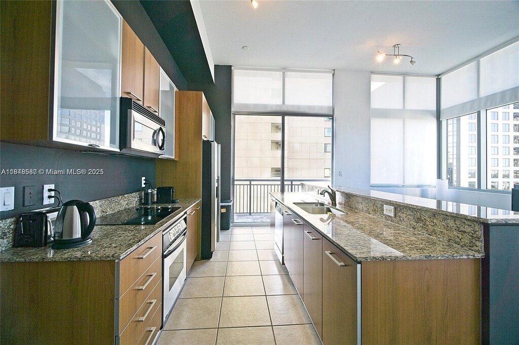 This light and airy condo features 2 large bedrooms plus a converted den that serves as a 3rd bedroom. Tile flooring throughout, ample cabinetry, lots of storage, generous closet space. Remodeled bathrooms. Large laundry room with plenty of pantry space. Available extra parking space for $100 a month. Easy to show. BUILDING OFFERS 2 HEATED POOLS, GYM, CARDIO ROOM, POOL TABLE, 24 HOUR CONCIERGE & VALET. WALK TO DADELAND MALL, PUBLIX, TRADER JOES, METRO STATION AND ALL UP AND COMING RESTAURANTS.