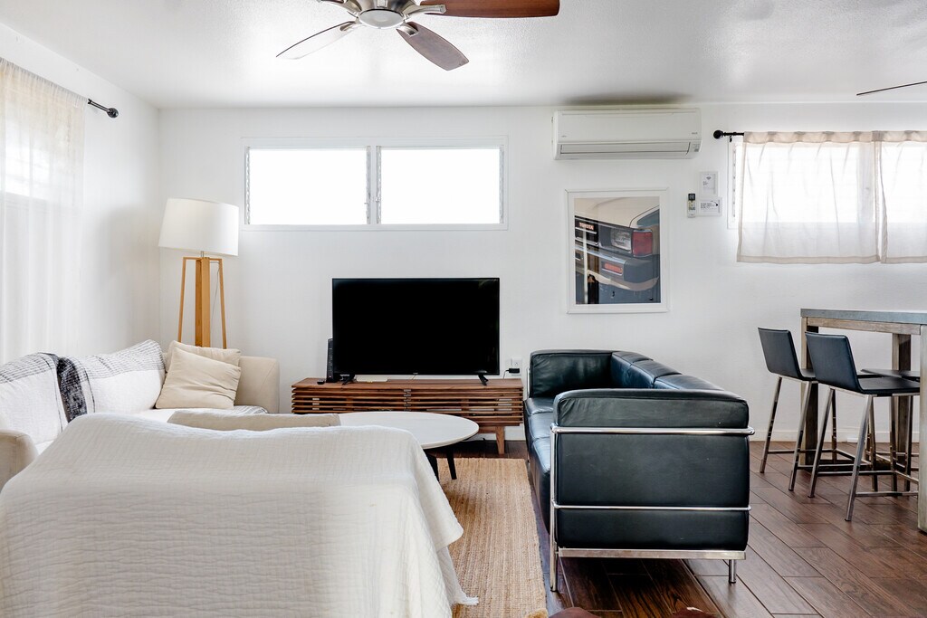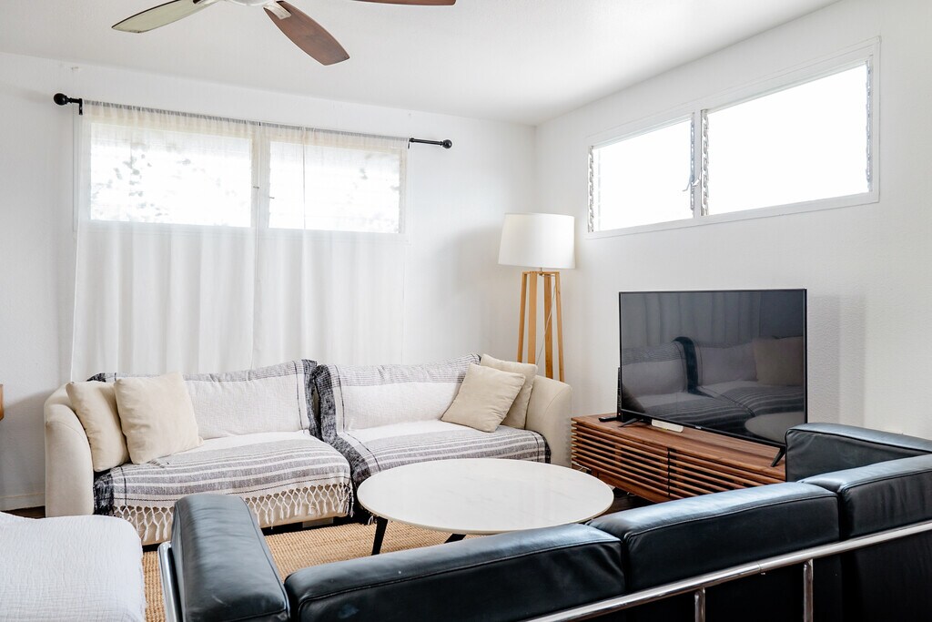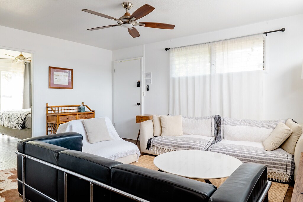 A classic single-story, semi-renovated, fully furnished, beach cottage just steps from your own, private sandy beach. A real chance to experience an authentic Hawaiian getaway, in an old sugar plantation neighborhood away from the tourist mobs of Waikiki. The home is located on the south side (da best side!) of Oahu, about 45 minutes west of downtown Honolulu & Waikiki. Tucked away from the tourist traps of Waikiki, the West Oahu abode is a renovated plantation-style home with several modern updates. All utilities included; gas, water, sewage, electricity, air conditioning and internet. Minimum one month lease. We have other homes on the lane with the same amenities. Available now, feel free to inquire. 4 adults maximum occupancy. Pets welcome! Optional monthly pet fee available. NO SMOKING -On a private/gated lane with key code access -Exclusive access to a secluded beachfront, no tourists in sight! -A revitalizing beach all to yourself, for sunrise and sunset. The cozy beach house is ideal for corporate rentals, remote workers, professionals/digital nomads, and small families. -500 mbps fiber wifi -Smart TV with Amazon Prime, Netflix and Disney+ -Keyless gate and door entry -Private beach access for residents + outdoor shower -One covered car port parking space attached to bungalow -Queen sized beds complete with linens/towels/beach towels -Air conditioning -Fully equipped kitchen with pots/pans/dishes/spices/condiments -Private washer/dryer Driving distances: Gas Station ; Longs Drugs ; 7-11 ; McDonald's: 1 min Pu'uloa Beach and One'ula Beach (aka "Hau Bush", Surfing): 3 min Safeway Grocery: 8 min Wai Kai Lagoon and Wave surfing: 8 min Ka Makana Ali'i Mall + Foodland Farms Grocery: 8 min White Plains Beach (Surfing): 12 min Costco + Target: 17 min Ko Olina Resorts, Disney Aulani: 20 min North Shore/Haleiwa: 35 min Waikiki: 30 min One month minimum lease. 4 adults maximum occupancy. No smoking. Pets negotiable with monthly pet fee. All utilities included; gas, water, sewage, electricity and 500 mbps fiber internet. non-refundable one time cleaning fee: $150 monthly cleanings available.