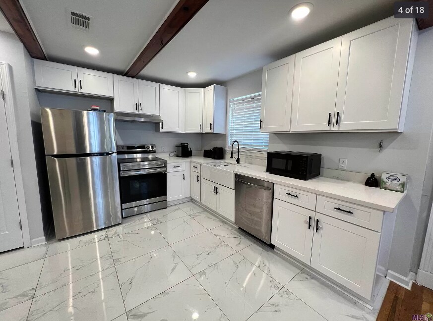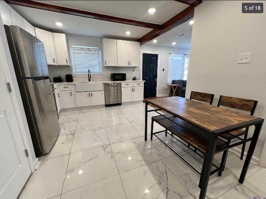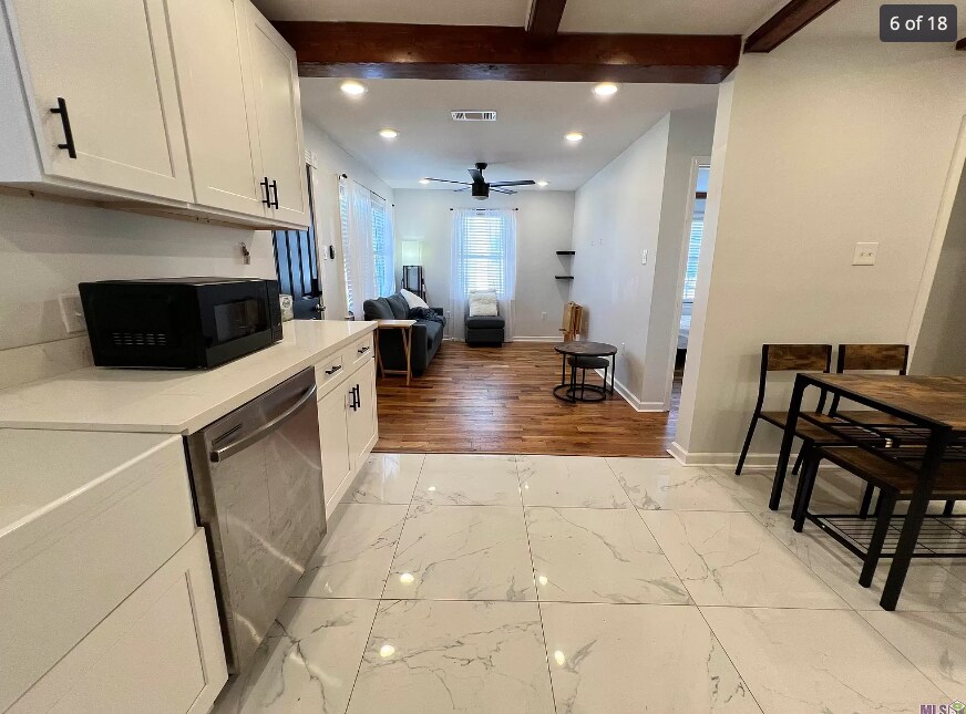 Located at 911 South 12th Street in Baton Rouge, LA, this single-family home, fully remodeled in 2023, combines classic charm with modern updates. It features new electrical, plumbing, and central A/C systems, along with a replaced roof. Inside, you'll find refinished original wood floors in the living room and bedrooms, and new tile in the kitchen and master bathroom. The kitchen boasts new cabinets and quartz countertops with a farm sink. The master bath includes a double vanity and a walk-in closet with built-ins. Set in a rapidly growing area, the home offers off-street parking and is within walking distance to parks, bars, and restaurants on Government Street.