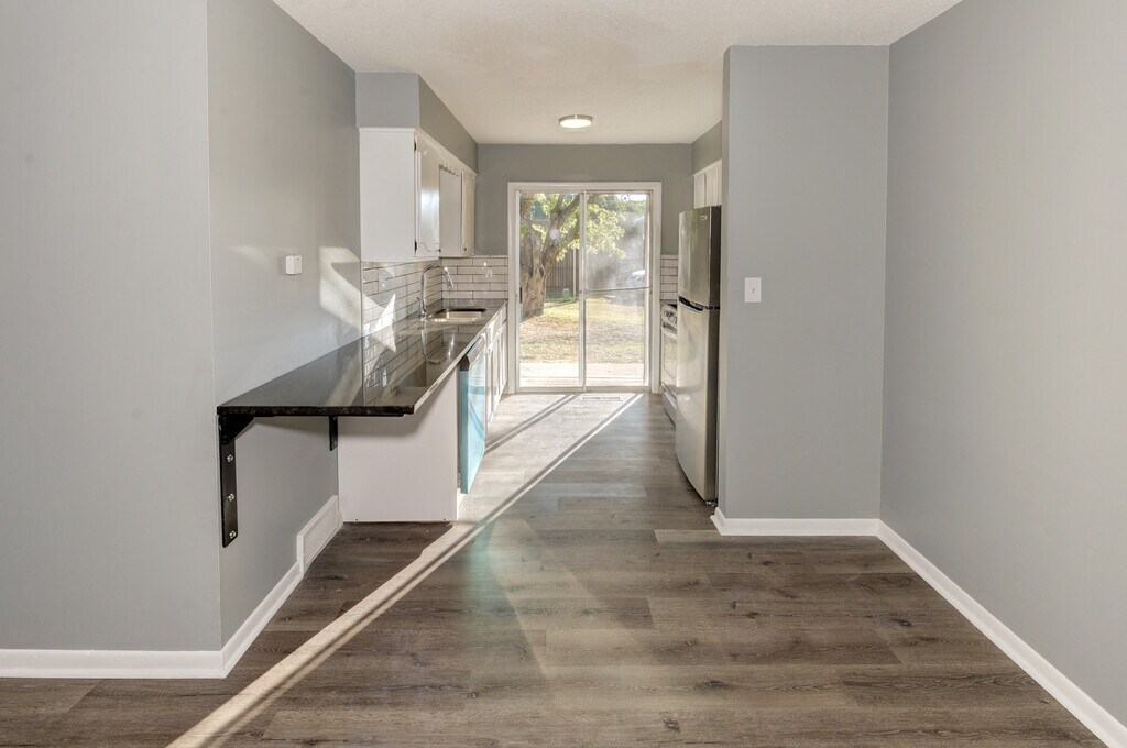 This renovated 1 Bedroom/1 Bath apartment is quietly nestled just blocks from Oak Park Mall, great restaurants, local parks, and easy access to Highway 69 & I-35. Location is essential, but so is your personal living space! This spacious unit boasts granite counter-tops, custom cabinets, new appliances, and premier flooring. Allowing for a luxurious feel, without the luxurious price! Subdivision swimming Pool, greenspace and playground within walking distance.