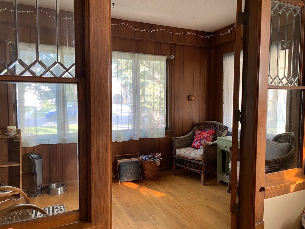 This is a large, beautiful, main-floor, 2-bedroom/1 bathroom apartment close to downtown and Sanford. It has original hardwood floors throughout, original woodwork, and spacious rooms. It has a living room, dining room, laundry room with appliances and extra storage cabinets, built in china cabinet, and a large walk-in coat closet. The kitchen has a pantry shelf and lots of cupboards. There is a 3 season porch that has French doors that open to the living room. Another porch that is open to the elements is connected to the 3-season porch. This apartment also has a garage with opener. The rent includes heat and s/w/g, and the lawn and snow care is taken care of by the owner. The "lawn" is actually hostas and flowering plants that bloom at different points during the spring and summer. One month's deposit is required and a background check will be done. There is no smoking and no dogs at this apartment. The lease is month to month. If you have any questions, just ask. Thanks and have a great day!