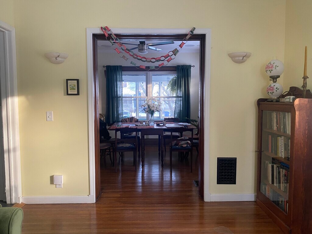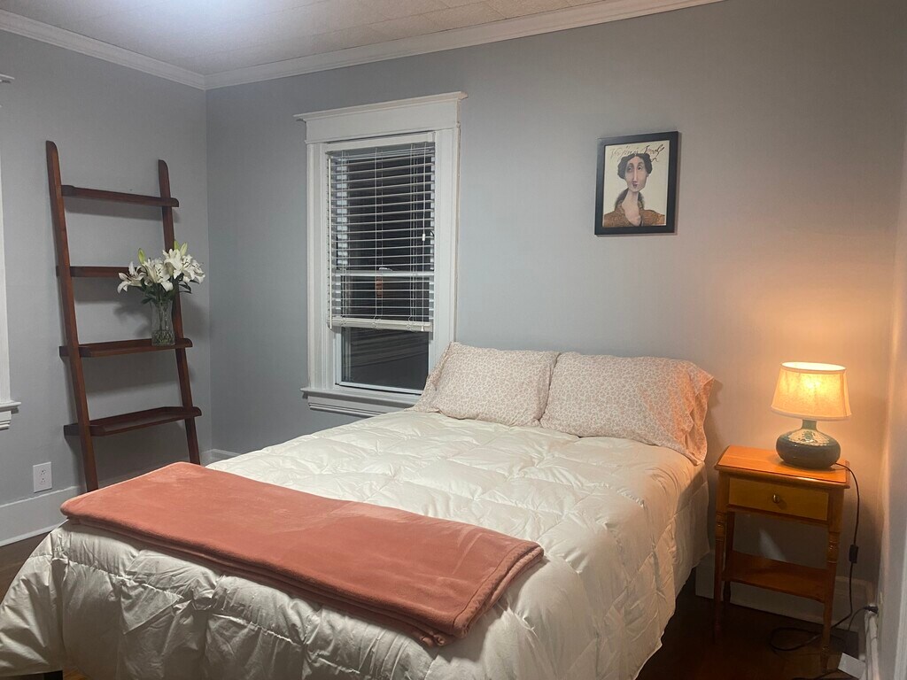 Private Upstairs Room in Shared Home for a Female Tenant You will share this spacious two-story home featuring a living room, dining room, kitchen, office, and seasonal enclosed porch with one female tenant. This is an upstairs bedroom and a private bathroom, a great setup if you prefer space, privacy, and the ambiance of a full house rather than a crowded apartment. The house is about 1,400 square feet, featuring two bathrooms: one located upstairs and one downstairs. Your private bedroom features a full-size bed, a dresser, a nightstand, a smart TV, a lamp, and a closet. A desk can be added if needed. The two bathrooms feature one with a shower/tub combination and a double-sink vanity (located upstairs) and another with a walk-in shower and a single vanity (located downstairs). The two tenants can either share both or coordinate to each have her own. You'll have full access to all common areas: a bright, open living room with a smart TV, a large dining room with a table for shared meals or work, and a fully updated kitchen. The renovated kitchen features butcher block counters, modern appliances, ample cabinet space, and everything you need to cook or prepare meals. There's also a bonus room that could work well as an office or extra storage, plus access to attic space and a basement laundry room. Out back, there's a fenced-in yard for some fresh air, and a screened-in porch if you want to hang outside. Off-street parking is included, and a garage is also available. All utilities and WiFi are included in the rent. The property is home to one calm, older dog, friendly and mellow. This is an excellent fit for a female graduate student, postdoctoral fellow, faculty member, traveling nurse, or working professional looking for a well-located, furnished space with a homey feel and room to breathe. Reach out if it sounds like the kind of place that interests you. Minimum three-month stay.