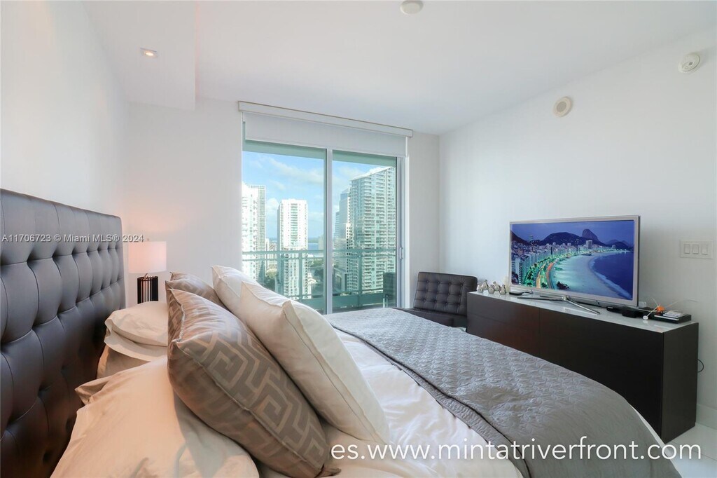 Fully furnished and decorated 2BED/ 2BATH unit at Mint. Beautiful white wood porcelain floors, blackout shades, washer & dryer, basic cable & internet included. King size bed in the Master suite and full size bed in the guest bedroom. 1 assigned parking. Unobstructed views of the city and the Miami River. Great location, walking distance to the Brickell City Centre, easy access to the metro-mover and I-95. Modern building and amenities: pool, sauna, jacuzzi, steam room, gym, business center and lounge.