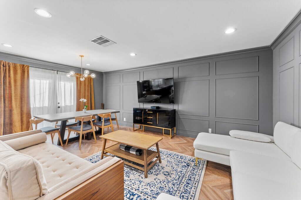 This beautifully remodeled single-level home combines modern comfort with everyday convenience. With 4 spacious bedrooms and 2 bathrooms, it's perfect for families, professionals, or anyone seeking a well-appointed mid-term rental in a safe, family-friendly neighborhood. Interior Features *Bright and open living and dining areas designed for comfort and connection *Fully equipped kitchen with updated appliances and plenty of storage space *Primary bedroom with ensuite bathroom for privacy and ease *Three additional bedrooms ideal for families *Two modern bathrooms with quality fixtures and thoughtful details Amenities & Comforts *In-unit washer and dryer *Central air conditioning and heating *High-speed WiFi ready for remote work and streaming *Generous closet and storage space throughout *Freshly painted with updated flooring for a clean, modern feel Outdoor & Parking *Private driveway and garage with ample parking *Low-maintenance yard and outdoor area for relaxation or entertaining *Quiet corner lot with walkable, well-kept streets Location Conveniently located near grocery stores, restaurants, schools, parks, and healthcare facilities. Easy freeway access connects you quickly to Huntington Beach, Costa Mesa, Anaheim, and surrounding areas perfect for balancing work and daily life. Ideal For *Families seeking a stable, spacious rental home *Professionals on extended assignments All utilities included up to $400/month stipend. Any over charges will be paid by tenant. Includes gas, water, electric, wife, trash and landscaping. No smoking on property.