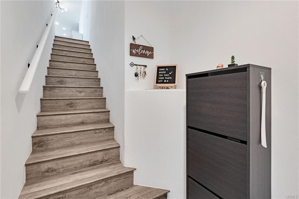 Experience stylish hillside living in the highly desirable Summit Court community of Anaheim Hills! This beautifully upgraded 2-bedroom, 2-bath home offers all living space on a single level, with a private ground-floor entry and direct access from the attached garage. A private staircase leads you to an inviting open-concept layout filled with natural light and elevated views. The spacious living room features a cozy fireplace and flows effortlessly into the dining area and remodeled kitchen—perfect for both everyday living and entertaining. The kitchen is outfitted with sleek stone countertops, a custom tile backsplash, stainless steel appliances, and abundant cabinetry. Step outside to the large balcony and take in sweeping vistas and fresh breezes. This home is move-in ready with features such as rich wood laminate floors, recessed lighting, window blinds, silhouette shades, and a crisp, modern feel that complements any décor. Both bedrooms are generously sized. The primary suite includes a large walk-in closet and remodeled en suite bath, while the secondary bedroom is adjacent to a second upgraded bathroom with a walk-in shower. Laundry is conveniently located in the attached one-car garage, and an assigned covered carport adds extra parking flexibility. Ample guest parking is also available nearby. Enjoy resort-style amenities including a sparkling pool and spa, BBQ area, fitness room, and tot lot—all set against the backdrop of scenic hilltops. Ideally located near dining, shopping, trails, parks, golf, and with easy access to the 91 Freeway and 241 Toll Road, this is Anaheim Hills living at its best!
