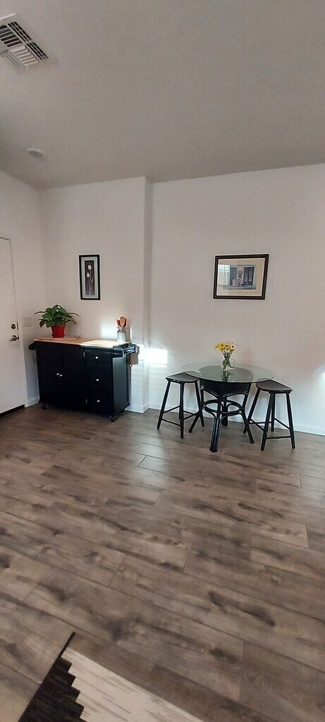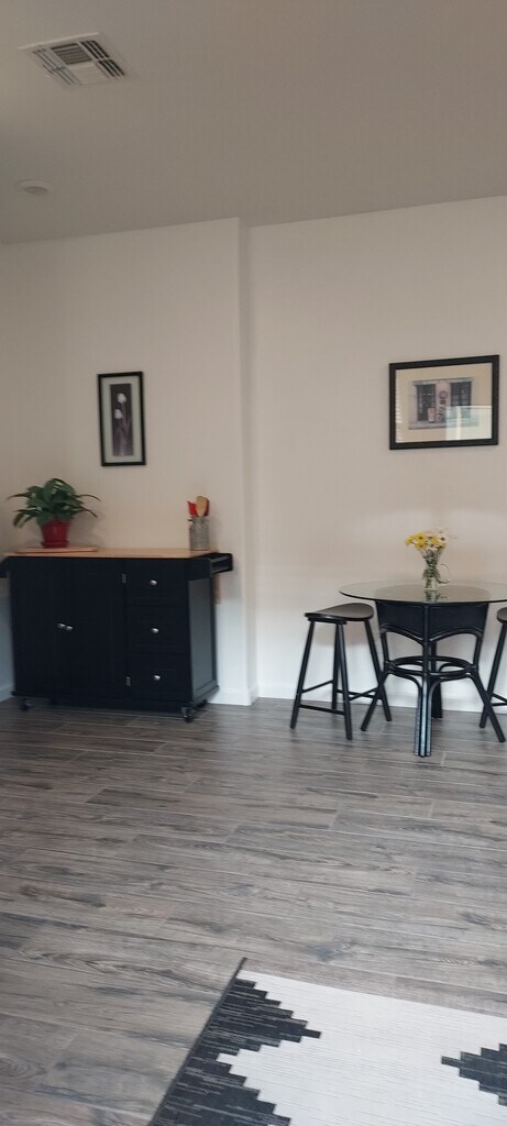 1 BEDROOM/ 1 BATH UNIT IN A GATED COMMUNITY. RENT OF $1200 PER MONTH INCLUDES ALL UTILITIES (GAS, ELECTRIC, WATER, AND GARBAGE) PLUS FREE INTERNET WIFI. THE OPEN FLOOR PLAN (610 SQ FT) FEATURES UPGRADED TILE AND BERBER CARPETING. THE KITCHENETTE WITH QUARTZ COUNTERTOPS AND SUBWAY TILE BACKSPLASH, IS EQUIPPED WITH STAINLESS STEEL APPLIANCES THAT INCLUDE A CONVECTION MICROWAVE, DOUBLE INDUCTION COOKER, DISHWASHER, AND REFRIGERATOR/FREEZER WITH ICE AND WATER DISPENSER. THE ISLAND, WHICH FEATURES ADDITIONAL FOLD OUT COUNTER SPACE, IS ON WHEELS FOR EASY REPOSITIONING. THE 15X21 LIVING ROOM WITH CEILING FAN,AND LOUVERED BLINDS, HAS THE OPTION OF BEING FURNISHED OR UNFURNISHED. LARGE BATHROOM WITH AN OVERSIZED TILED SHOWER, QUARTZ COUNTERTOP, AND VANITY WITH PLENTY OF STORAGE SPACE. THE 12X12 MASTERBEDROOM WITH BERBER CARPETING, LOUVERED BLINDS, AND CEILING FAN, BOASTS A WALK-IN CLOSET COMPLETE WITH A WASHER AND DRYER. THIS UNIT IS LOCATED IN A SECURE, GATED COMMUNITY AND IS EQUIPPED WITH A PERSONALIZED SECURITY KEYPAD ON THE FRONT DOOR, GIVING THE OPTION OF KEYPAD OR KEYED ENTRY. THERE IS A MANDATORY 1-YEAR LEASE REQUIRED, ALONG WITH A SECURITY DEPOSIT OF $1000. THE SECURITY DEPOSIT CAN BE SPLIT INTO 2 EQUAL PAYMENTS IF NECESSARY; $600 TO BE PAID ON SIGNING A ONE-YEAR LEASE AGREEMENT, WITH THE BALANCE TO BE PAID ALONG WITH THE 2ND MONTH'S RENT. PLEASE TEXT ME IF YOU WOULD LIKE TO SET UP AN APPOINTMENT TO VIEW THE UNIT. I WILL RESPOND IMMEDIATELY, VIA RETURN TEXT. THANK YOU, TERI HARRIS