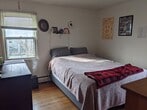 The furnished 2 BR 1 BA apartment is conveniently close to Cornell - both walking distance, and nearby TCAT bus stops. New windows were recently installed and provide lots of natural light. In addition, there are private bedrooms each with its own closet and additional storage closet in the space. Bright common area with eating space. Bathroom includes full tub (pink ceramic tile), shower and enclosed storage. Kitchen includes refrigerator/freezer, stove/oven, microwave along with ample counter space. Rent includes heat, hot water and water/sewer fee. Tenants pay electricity and cable/internet. Nice yard and front porch with FREE off-street parking. Coin-operated laundry available on site. 10 or 12 month lease available. Cats OK. Smoke free house.