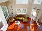 Welcome to this stunning front-facing townhome in an exclusive 5-unit boutique building at the coveted corner of 15th Street and Montana Avenue in Santa Monica. Built in 2000, this three-story Mediterranean-style residence offers approximately 1,700 sq ft of thoughtfully designed living space, plus an additional 150 sq ft private rooftop deck with ocean views — making it a truly rare offering in one of the Westside's most desirable corridors. As a front unit, this home is flooded with natural light throughout the day. Large picture windows deliver breathtaking 180-degree northwest views capturing the Pacific horizon, sky, and lush neighborhood treetops. The soaring 20-foot ceilings in the main living area create an airy, dramatic sense of space rarely found in Santa Monica townhomes. Rich Brazilian hardwood floors flow throughout the open-plan living and dining areas, while the kitchen is outfitted with stainless steel appliances and granite countertops. Two generously sized bedrooms are located on the lower level, each with ample closet space and large windows. The primary bedroom opens directly to a private deck overlooking the front landscaping. A spacious loft — ideal as a third bedroom, media room, or home office — captures more of those signature northwest views and accesses its own private deck. An in-unit washer and dryer adds everyday convenience. Three private outdoor spaces — a dining room deck, a loft deck, and the showstopping rooftop terrace — give this townhome an unmatched indoor-outdoor California lifestyle. The private 2-car garage with direct interior stair access rounds out this exceptional offering.