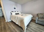 Purple Reign is a chic, romantic oceanfront getaway located on the 4th floor of Ocean Jewels Resort in Daytona Beach. Wake up to amazing oceanfront views and sip coffee from the private balcony complete with two Polywood rocking chairs. Recent remodel offers a tranquil space for just you, just you two, or up to four people. Resort amenities include an outdoor pool, patios with grills, a fitness center, an events room, and more. There is free on-site parking. The condo is within walking distance of shopping and restaurants. There is an attached restaurant that serves breakfast and lunch - try the bottomless mimosas and bloody mary's! During your stay, visit the nearby infamous Daytona Boardwalk and pier for a variety of restaurants, amusement, and pier fishing. Our condo is located only 7 miles from Daytona International Speedway.