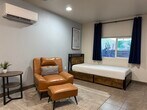 This modern 420 sq. ft. studio apartment offers a comfortable and convenient living space, fully furnished and ready to move in. Inside, you’ll find: A brand-new kitchenette with sink, countertop space, refrigerator A new shower stall and updated bathroom finishes A wall-mounted TV for easy viewing A new mini-split heat pump system for efficient heating and cooling A walk-in closet for ample storage Skylights that bring in natural light Step outside and enjoy your own our furnished patio, featuring: A large outdoor couch and Adirondack chairs A propane grill, perfect for entertaining A vibrant mural on the surrounding wall High-speed internet is included at no cost. This unit combines modern amenities with thoughtful design, offering a turnkey solution for comfortable living.