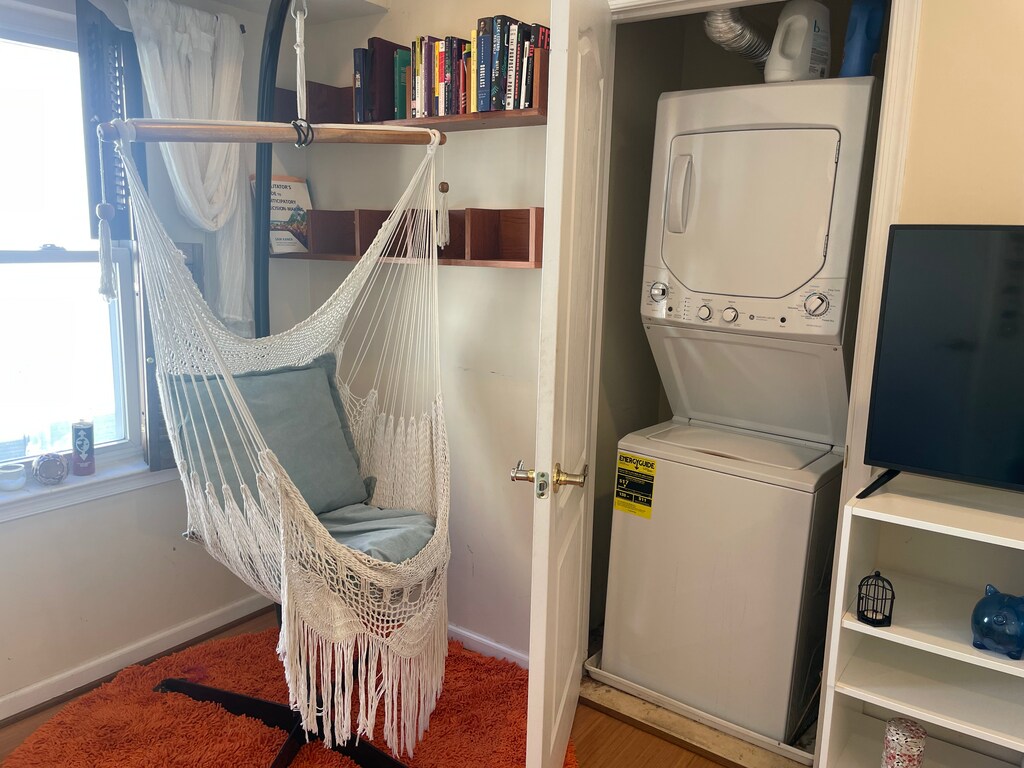 A relaxing and stylish pad to return to after a busy day in the city. This apartment is furnished with everything you need refresh and recharge: Living Room & Work Space -Roku Smart tv -Workdesk -Hammock chair for relaxing -Couch that converts into full-size sofabed Kitchen -Stainless steel appliances including dish washer -Inlcudes dishes, utensils, pots and pans -Coffee maker, toaster, microwave Bathroom w jacuzzi tub Bedroom -Queen size bed w comfortable mattress -Dresser, closet and storage space under bed Additional storage unit if needed. Free and easy street parking(no permit or zone sticker required, no 2hr parking or street sweeping) No smoking. No pets. Quiet hours 11pm-6am. Lease Options: -6 month minimum lease: $1,550/mo rent + utilities Security deposit: One month’s rent Credit check required