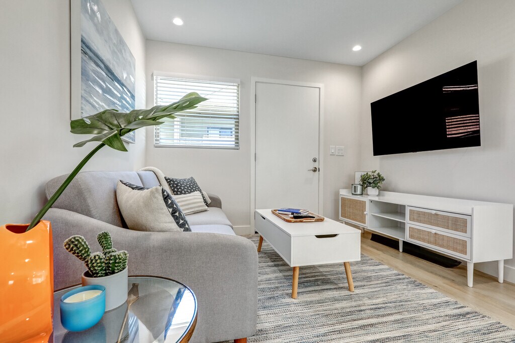 This 1-bedroom, 1-bathroom apartment at 940 Law St offers 500 square feet of living space. The living room is furnished and features air conditioning for comfort. The bathroom includes standard fixtures and provides essential amenities. The bedroom is adequately sized for a single occupant, with space for necessary furnishings. This property is smoke-free, ensuring a clean living environment. The exterior is well-maintained, contributing to a pleasant atmosphere. Rental price is available upon inquiry. This apartment is ideal for individuals seeking a compact and convenient living space close to the beach.