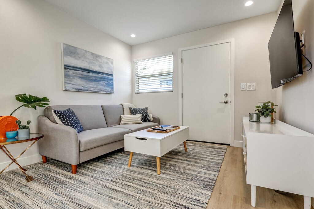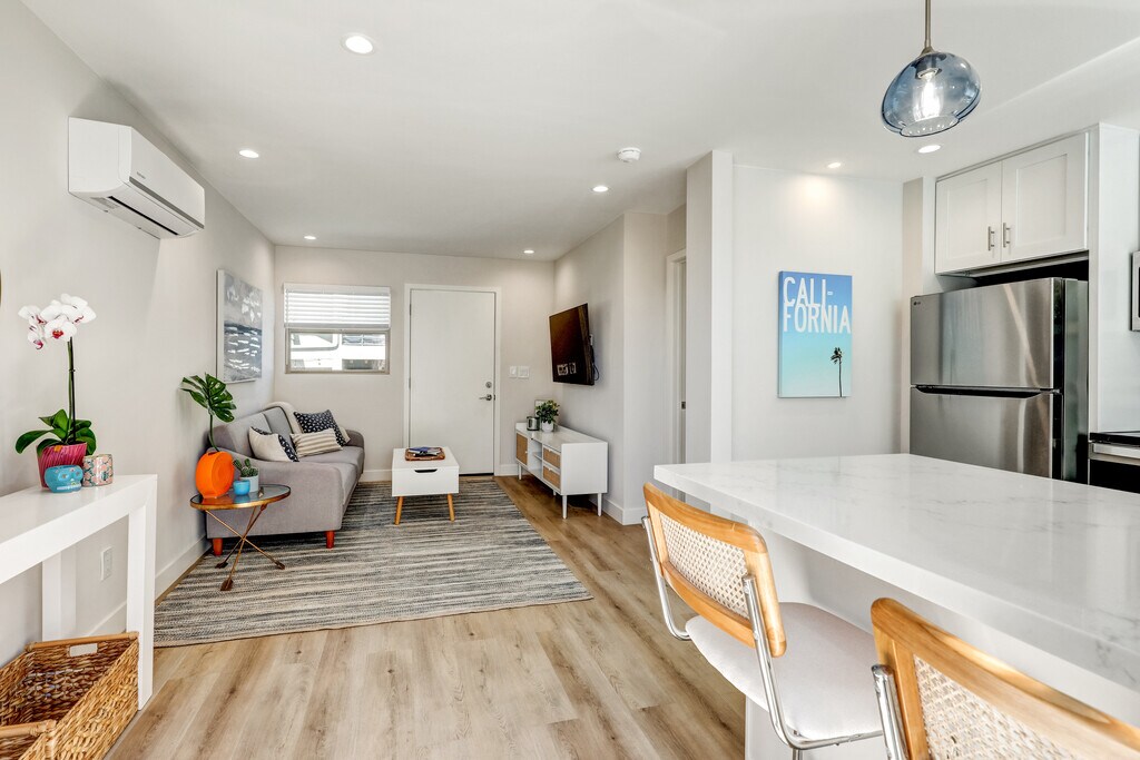 Brand new, FURNISHED ADU above our garage. Just two blocks from the ocean and Law Street Beach. The apartment is a 1 bed / 1 bath with a beautiful kitchen, brand new appliances, high speed internet and a rooftop deck with ocean views! It is completely separated from the main house, over our garage, with your own entrance from the alley. The apartment does not have laundry or parking, but there is a laundromat just 2 blocks away and there's plenty of street parking around.