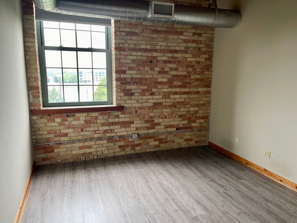 Boardwalk is an award winning historic 400,000 square foot furniture factory converted into 235 loft condominiums in downtown Grand Rapids with an on-site restaurant, bar, fitness center, hair salon, law, health & other professional offices. This condominium overlooks the forest courtyard. Some features include an island kitchen, solid surface flooring throughout, 1.5 baths, dining area and a bonus room off the living space. One covered parking space is included. Additional covered parking is available for $100 per month or outside for $50 per month. Onsite storage is available for rent.