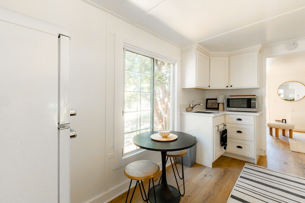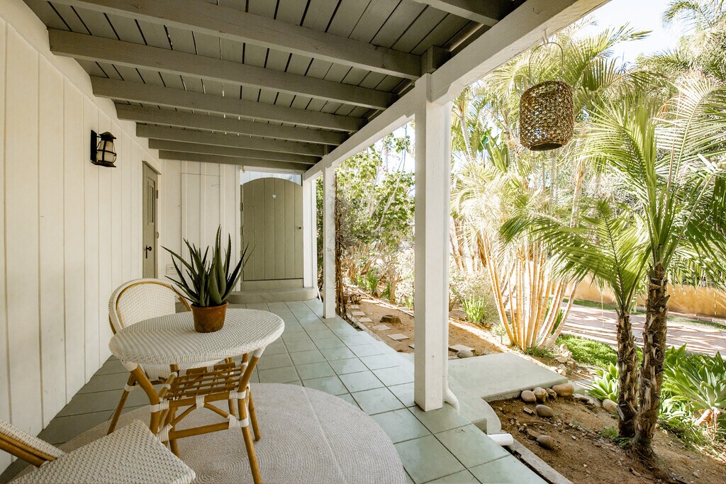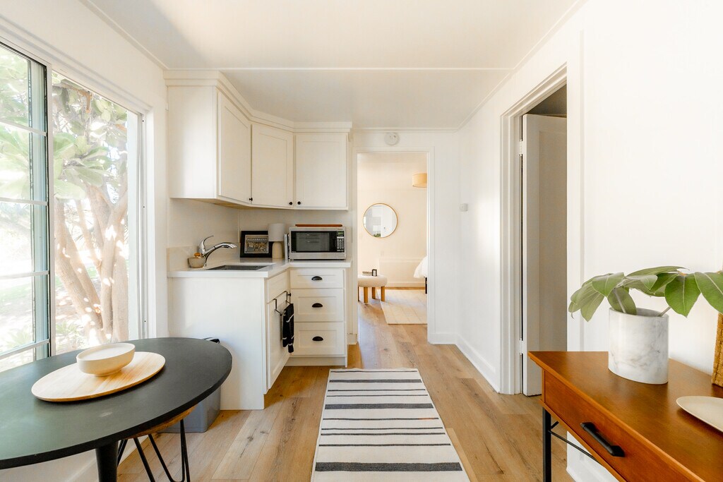 Private Furnished Guest House with Patio in Lush Spanish-Style Setting This stylish and secluded guest house sits on the lower level of a classic 1935 Spanish home, surrounded by half an acre of lush greenery. Fully remodeled in late 2022, the space offers comfort, privacy, and modern convenience in a serene garden setting. Enjoy your own separate entrance along the side of the home, leading to a private patio with outdoor seating. Inside, the guest house includes a cozy bedroom with a mounted smart TV, a fully updated bathroom with walk-in closet, and a compact living/kitchenette area perfect for simple day-to-day needs. The kitchenette features: Crisp white cabinetry and quartz countertops Apartment-size refrigerator Tabletop induction cooktop (easily stowed away) Microwave, toaster oven, air fryer, and French press Additional highlights include new flooring and fresh paint throughout, plus a peaceful, well-maintained exterior that creates a welcoming entrance. Street parking is easy and available directly in front of the property on this quiet residential street. Ideal for someone seeking a low-key, fully furnished rental with charm, privacy, and practical amenities, all in a lush, peaceful environment.