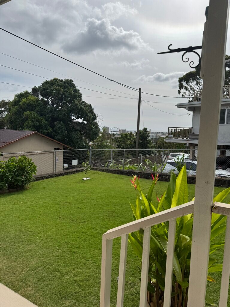 Come home to this charming well maintained duplex house, 2 bdrm, 1 bath unit, that offers a peaceful retreat in lower Alewa Heights. This downstairs unit is 676 sf plus a lanai that is over 200 sf. Electric and water is included for just $2500.00. Enjoy relaxing on your spacious deck, overlooking Ocean and Skyline views. Perfect for unwinding after a long day. Set up your BBQ and entertain family and friends in a well-groomed large yard area. The unit also comes with 1 tandem parking spot. Washer and yard service is also included. NO SMOKING OF ANY KIND AND NO PETS ALLOWED. MAHALO!
