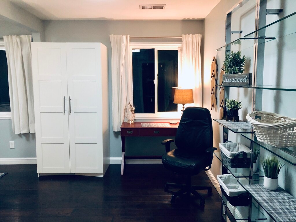 Nearby: Located in North Oakland in the NOBE neighborhood (North Oakland, Berkeley, Emeryville) right on the border of Berkeley & Emeryville. 12 min walk to Ashby BART (with cafes & restaurants along the way) 4 min walk to SF Transbay F Bus 1 min walk to the 88 Bus to UC Berkeley 8 min drive to Berkeley Bowl, Emeryville Mall, Ikea, Target, Downtown Berkeley, Rockridge, Temescal 93 bike score & 83 walk score Your New Home Includes: All Common Area Furnishings & Essential Kitchen Supplies A Biweekly Housekeeper (common areas & shared bathroom) High Speed Internet, Garbage, & Gardener. On-Site Shared Laundry Landscaped front yard and backyard Share home with awesome and friendly housemates; 1 female (20's) and 2 males (40's & 50's). Stanley, a pitti-mix dog also lives with us! For all except the primary bedroom, share a bathroom with two of us. Security Deposit: 1.5 months rent Income Verification (2.5x/monthly rent), Background and Criminal Check, and References