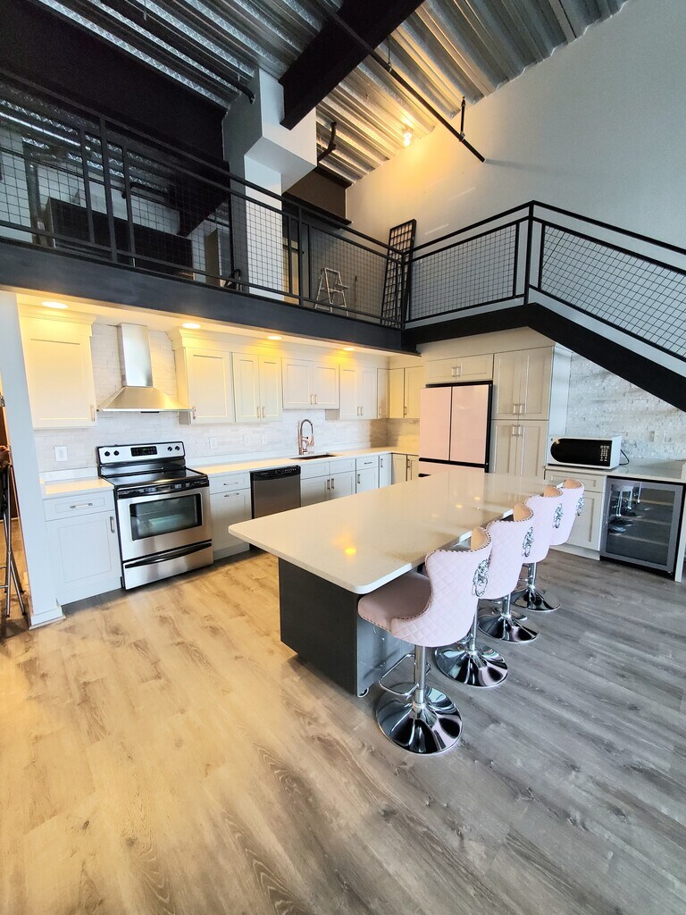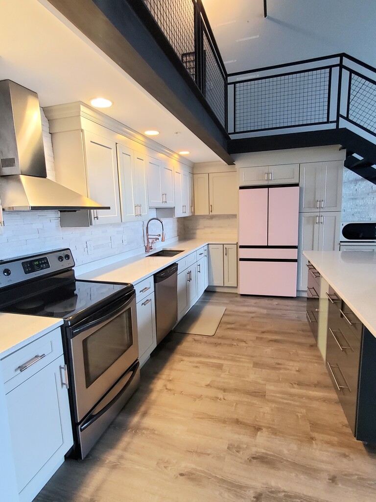 Stylish 1 bedroom loft condo for rent at ultra modern Industrie Lofts Chelsea available now. Commute to downtown Boston in as little as 15 minutes and Boston Logan airport in 10 minutes! This building and unit offer high quality industrial finishes such as metal stairs and ceilings, exposed stainless steel ductwork, while this unit features LVP flooring through our and a newly renovated kitchen with tons of cabinetry, a large island with seating, and quartz counters, the pink fridge also comes with gray panels that can be changed to suit your taste. Additional features: Gorgeous metallic silver chandelier, abundant storage and closet space, in-unit washer/dryer, huge bathroom with deep tub and separate steam shower, central air and full balcony. Easy MBTA commute to downtown Boston. Garaged parking and free visitor parking. Huge roof deck with views of the city! Wi-fi included! Tenant pays electric and efficient gas heat/hot water. First and full security required.